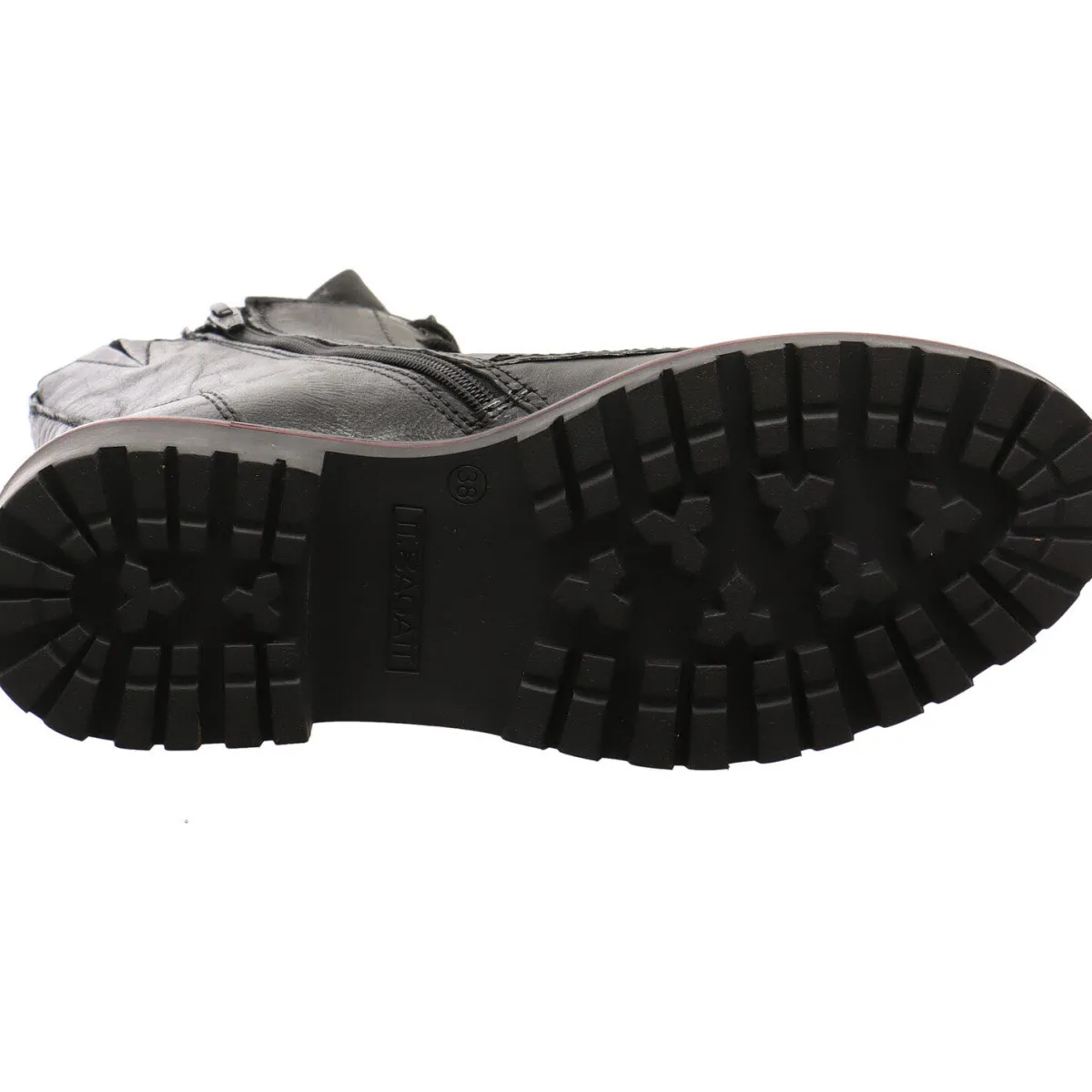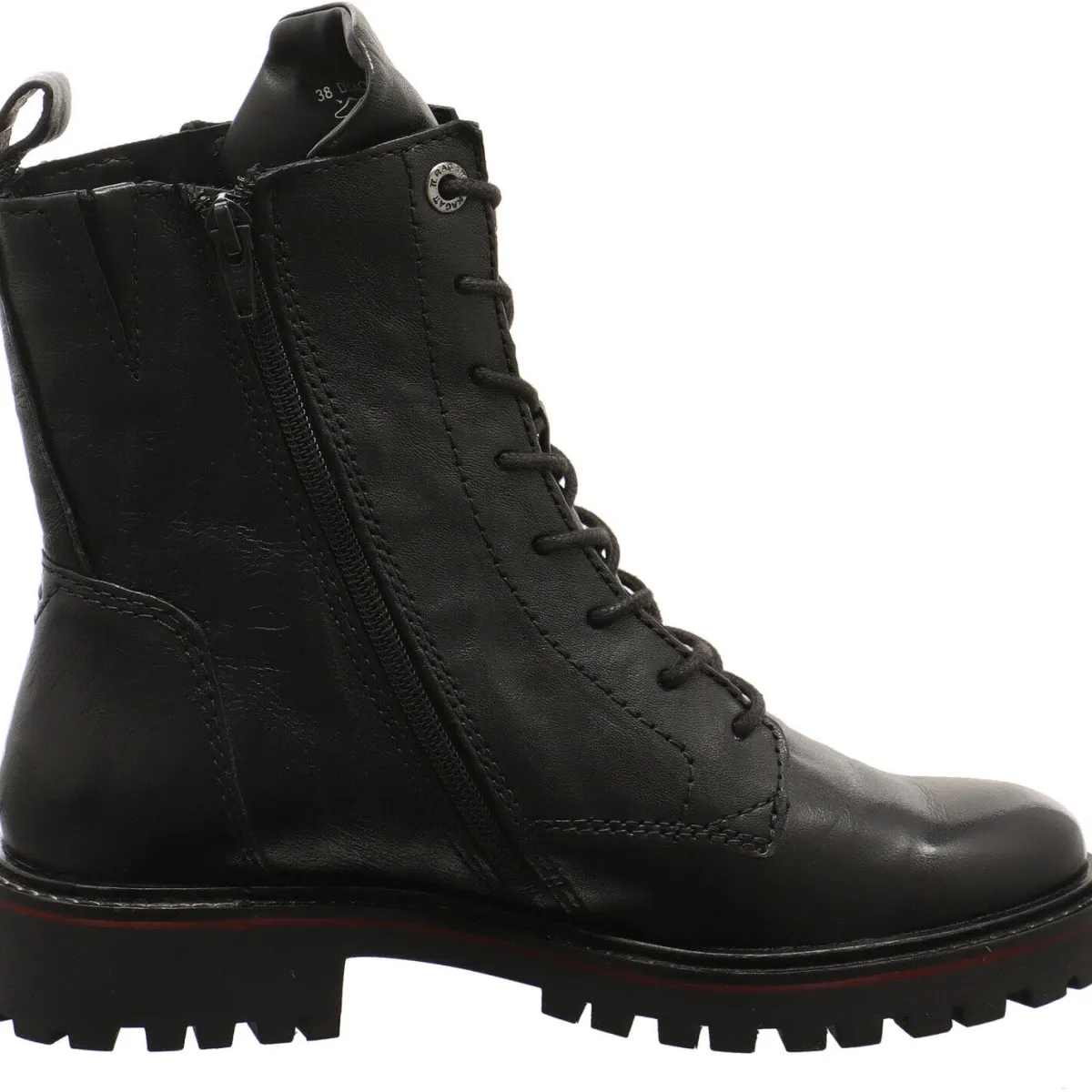 Durch die Schnürung, der Lasche am Schaft und dem seitlichen Reißverschluss lässt sich die Stiefelette super leicht anziehen und an den Fuß genau anpassen.