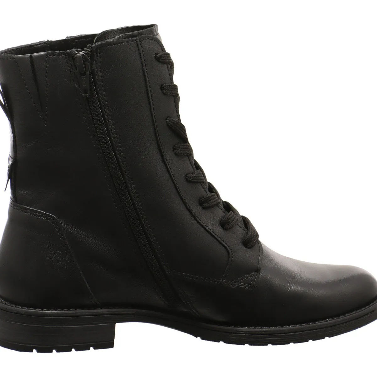 Ein dezenter Dehngummi an der Innenseite vom Schaft und der Reißverschluss, helfen bei einem leichten Einstieg. Durch die Schnürung kann der Schuh perfekt an deinen Fuß angepasst werden. Die Innensohle ist angenehm weich gepolstert und der dezente Blockabsatz, macht das Gehen besonders angenehm.