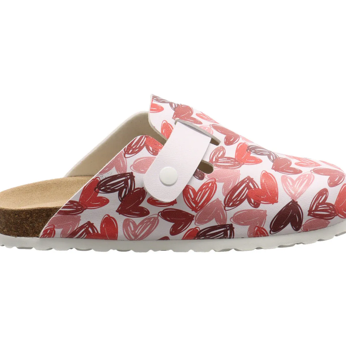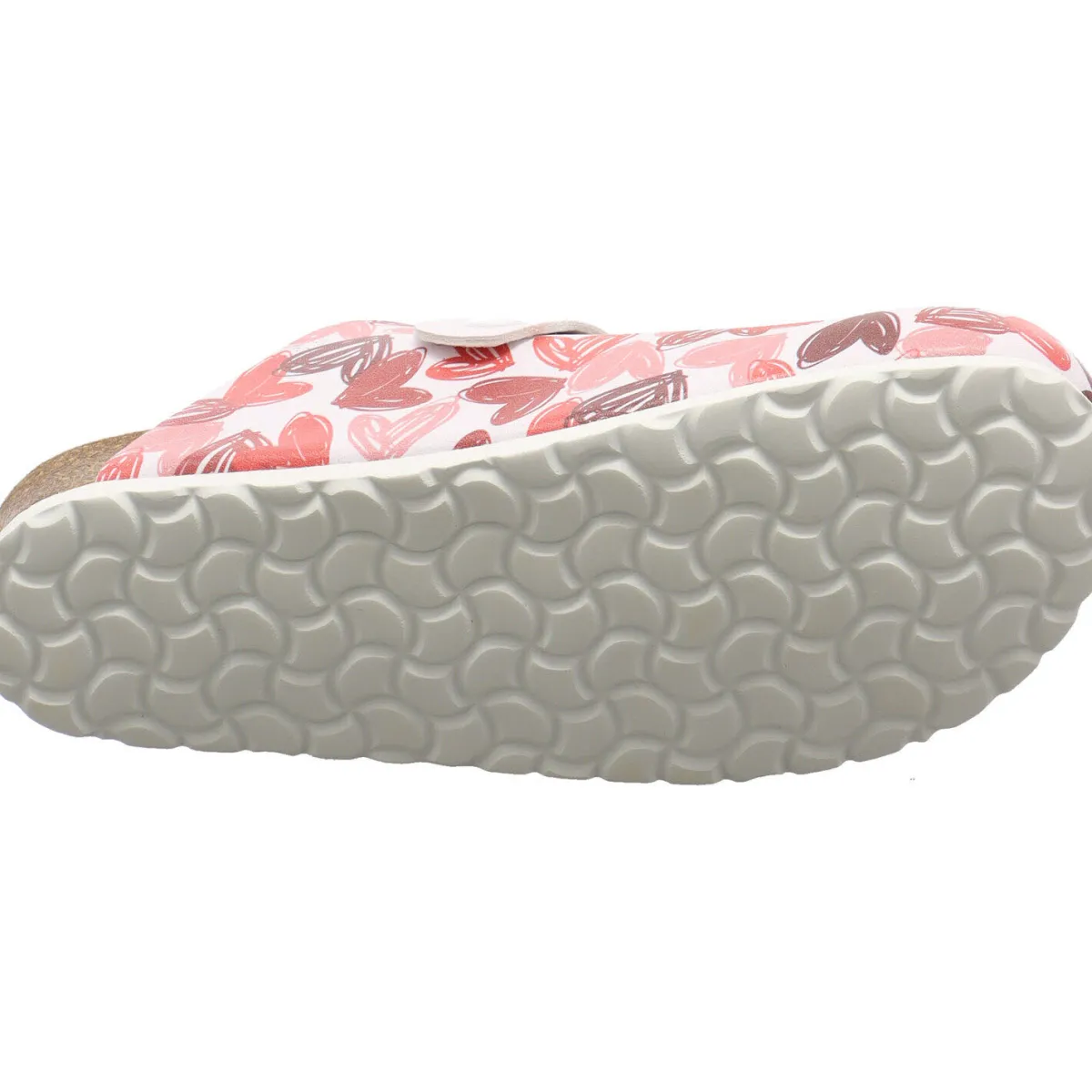 Das Obermaterial wurde aus Kunstleder in Weiß gefertigt und mit tollen Print mit Herzen in Rot verziert.