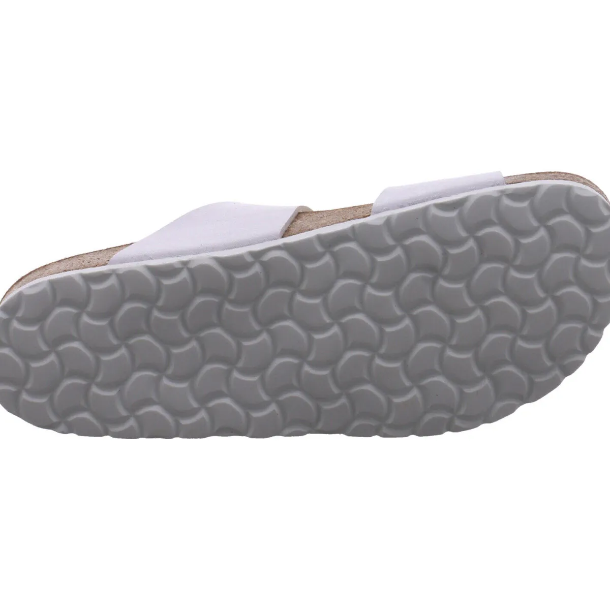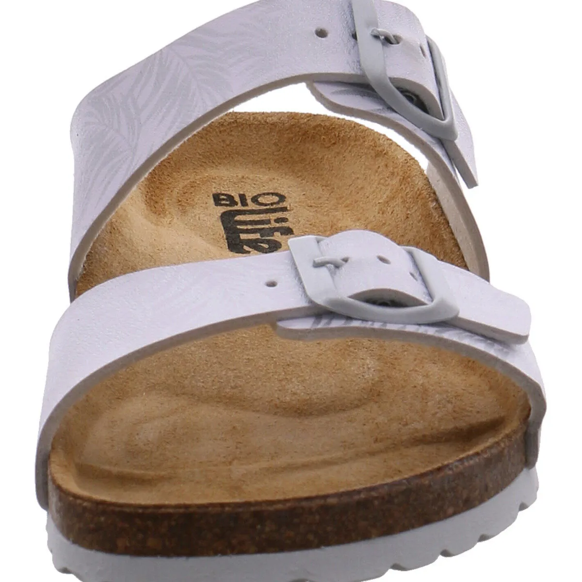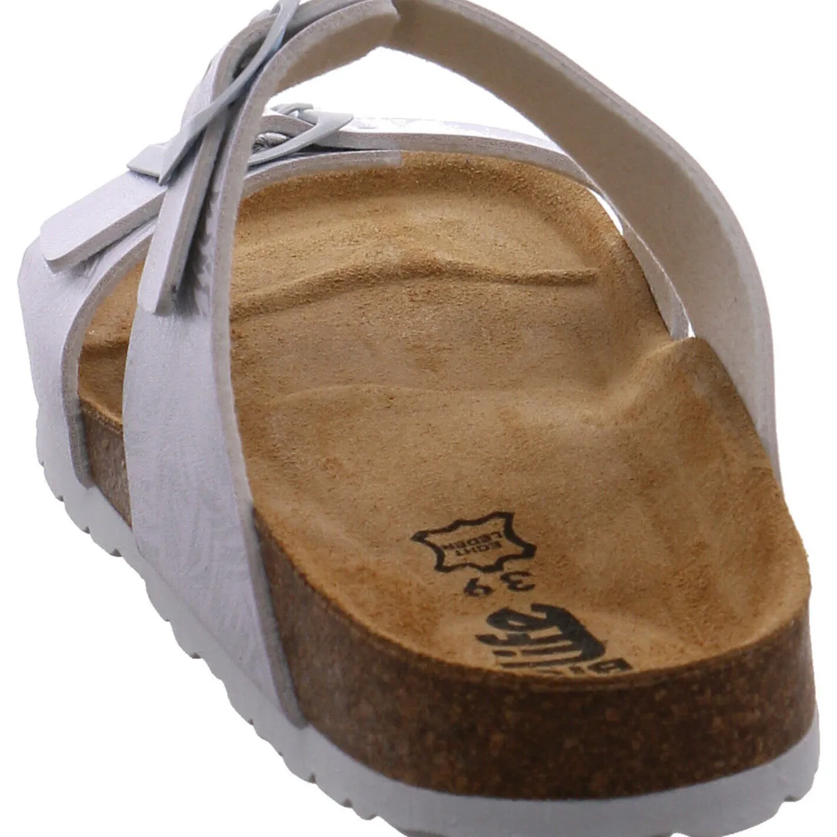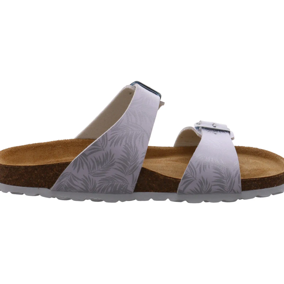 Gefertigt aus pflegeleichtem Kunstleder in Weiß und mit einem Floralen Muster in Silber und einem doppelten Riemen versehen macht der Schuh jeden Einsatz zuverlässig mit. Durch die Dornschnalle in Silber auf dem doppeltem Riemen, kann der Schuh optimal an den Fuß angepasst werden.