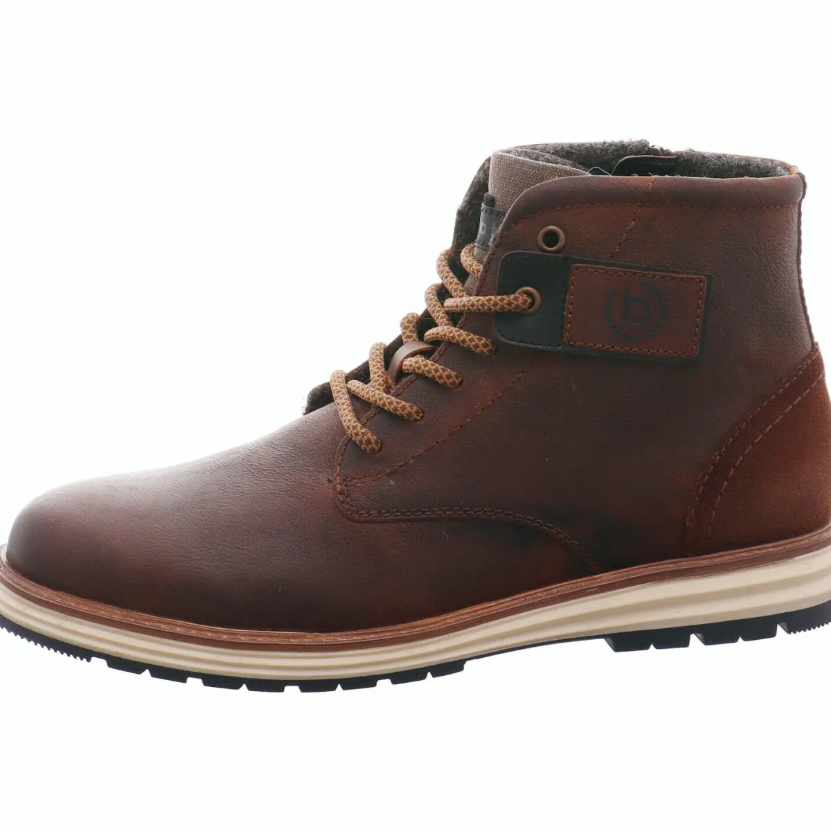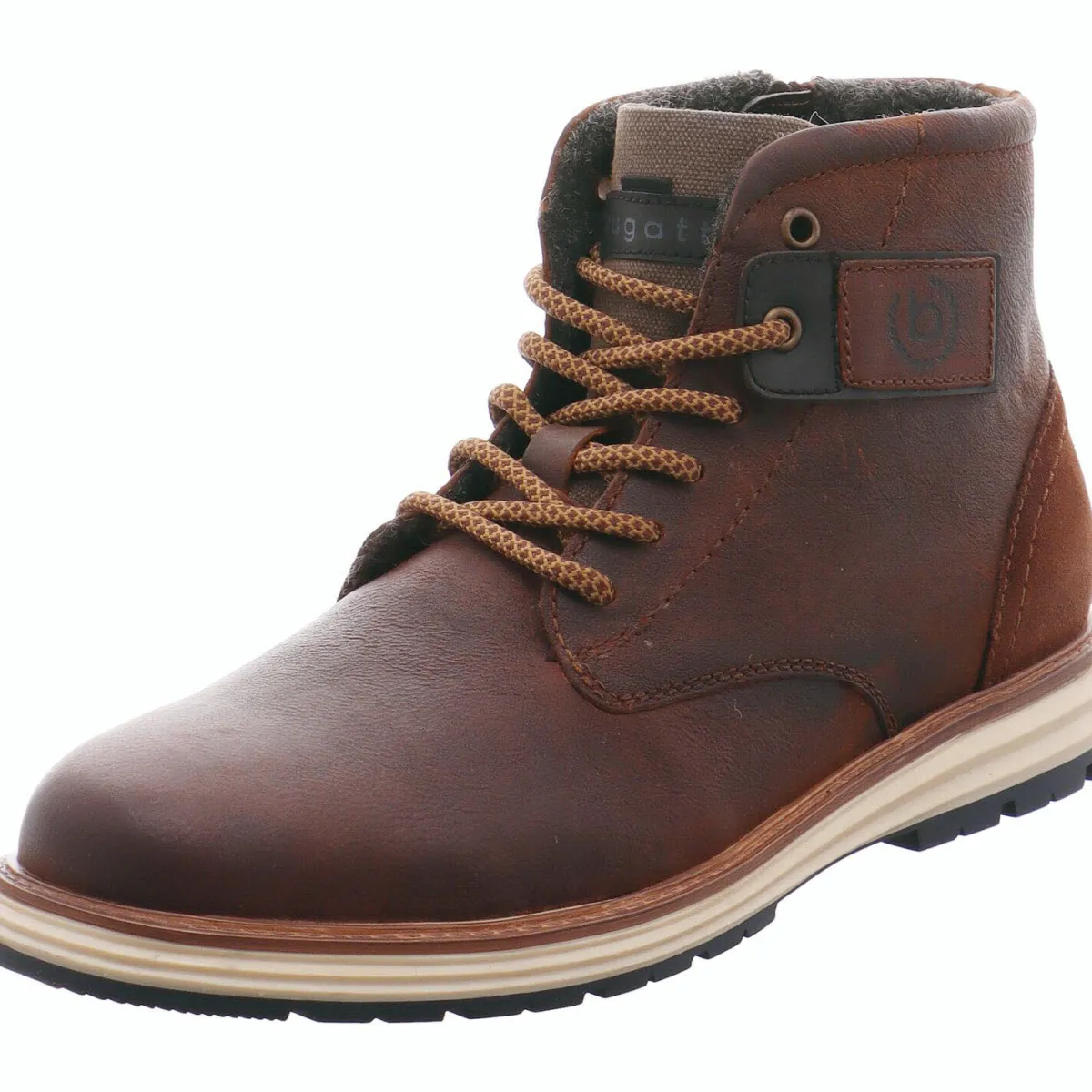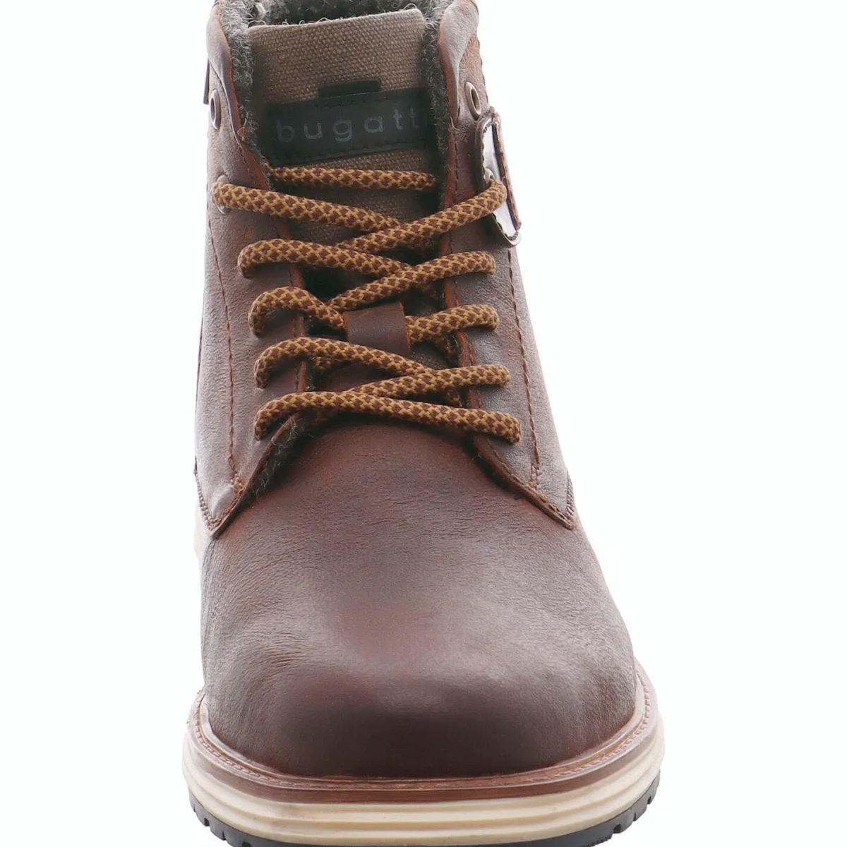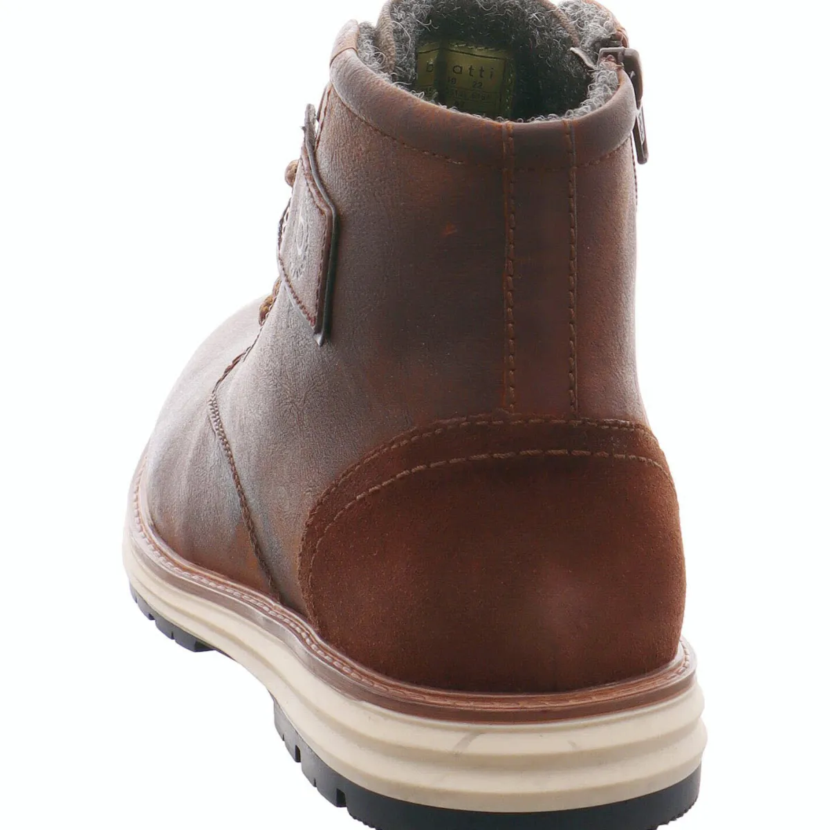 Das Obermaterial ist aus hochwertigem Echtleder im Antik Look gefertigt und sieht nicht nur schick aus, sondern ist auch robust und langlebig. Ein besonderes Highlight ist der Einsatz an der Seite mit dem Bugatti Logo. Das wollige Innenfutter lässt den Fuß auch an kalten Tagen und bei längerem Tragen nicht frieren.