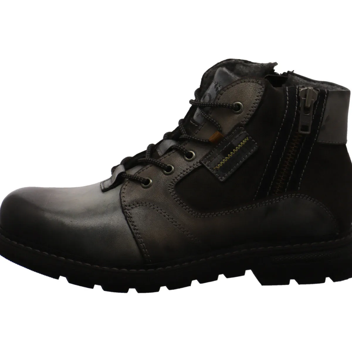 Die Kombination aus Reißverschluss und Lasche am Fersenbereich ermöglicht einen bequemen Einstieg. Durch die Schnürung kann der Schuh optimal an den Fuß angepasst werden.
