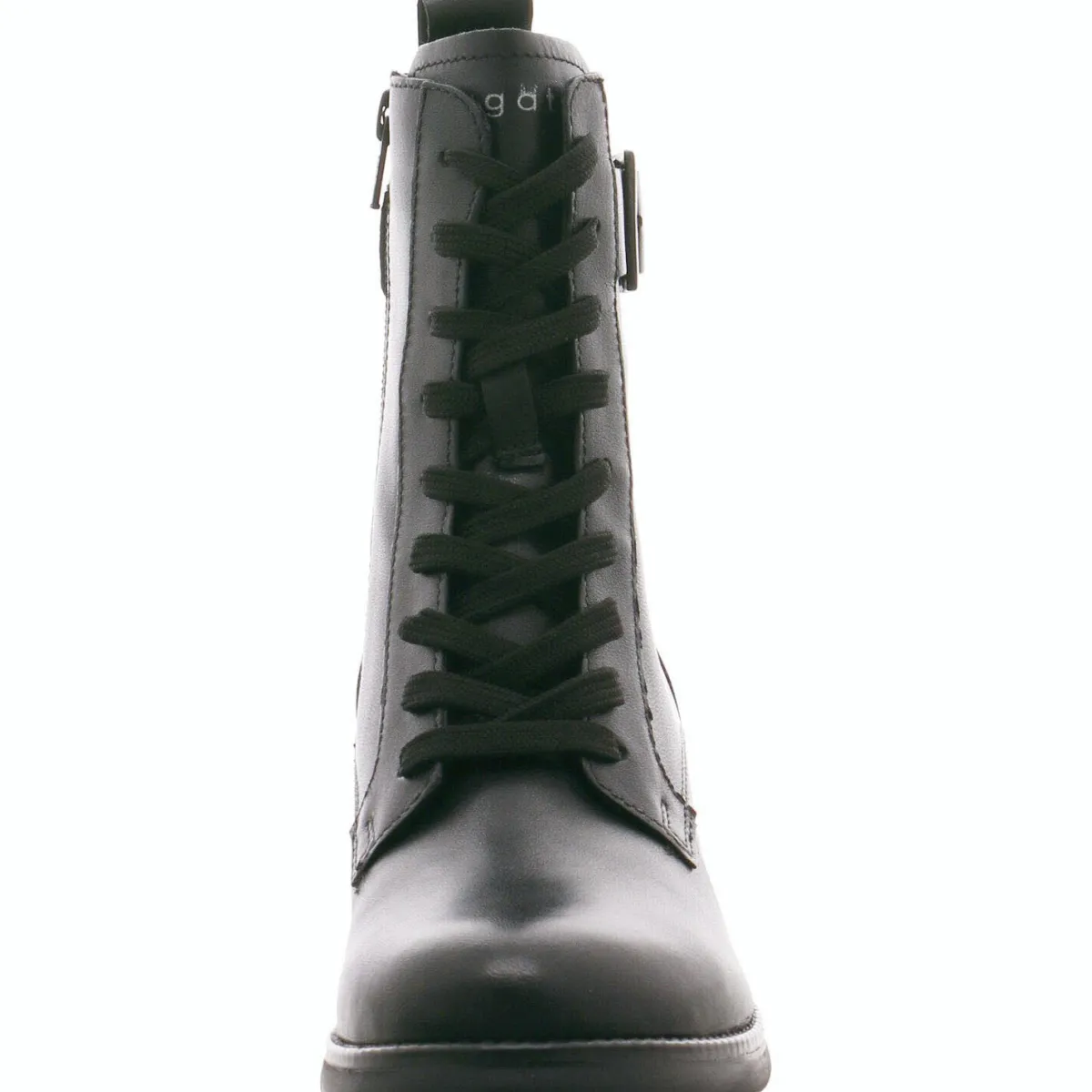 Der Schuh wurde aus weichem Echtleder in Schwarz gefertigt. Styling Highlights sind die Deko Schnalle am Schaft und die Marken Prägung im Fersenbereich.