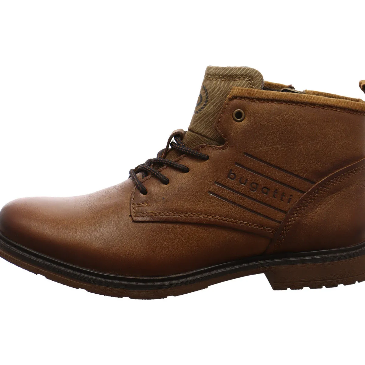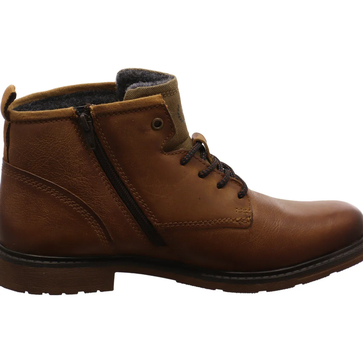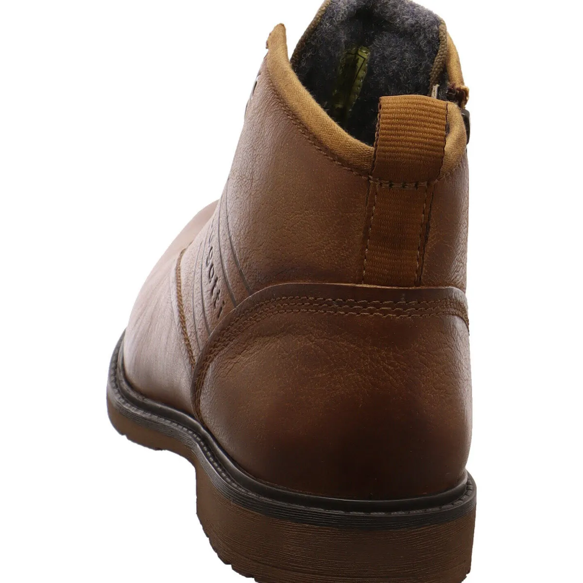 Sie wurde aus weichem, hochwertigen Echtleder in Cognac Braun gefertigt und begeistert durch ihren Used Look. Hingucker sind dabei, das Markenlogo an der eite und die Zunge aus Textil im Denim Look.