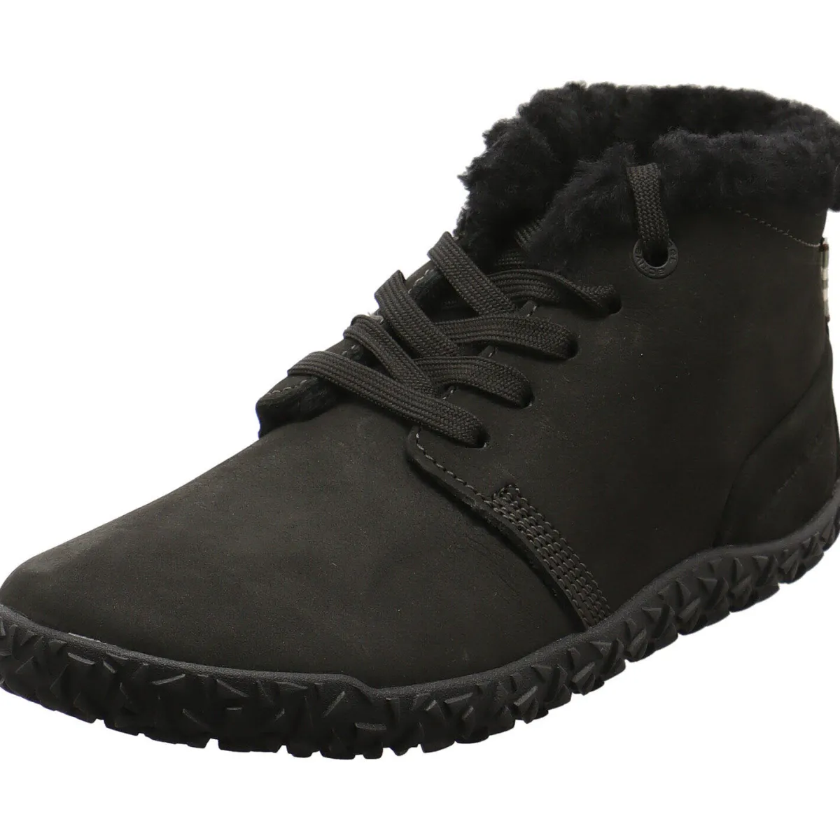 Der Schuh wurde aus Echtleder in Schwarz gefertigt. Er ist mit einer Schnürung versehen und hat ein warmes Innenfutter und eine Innensohle mit Wolle.