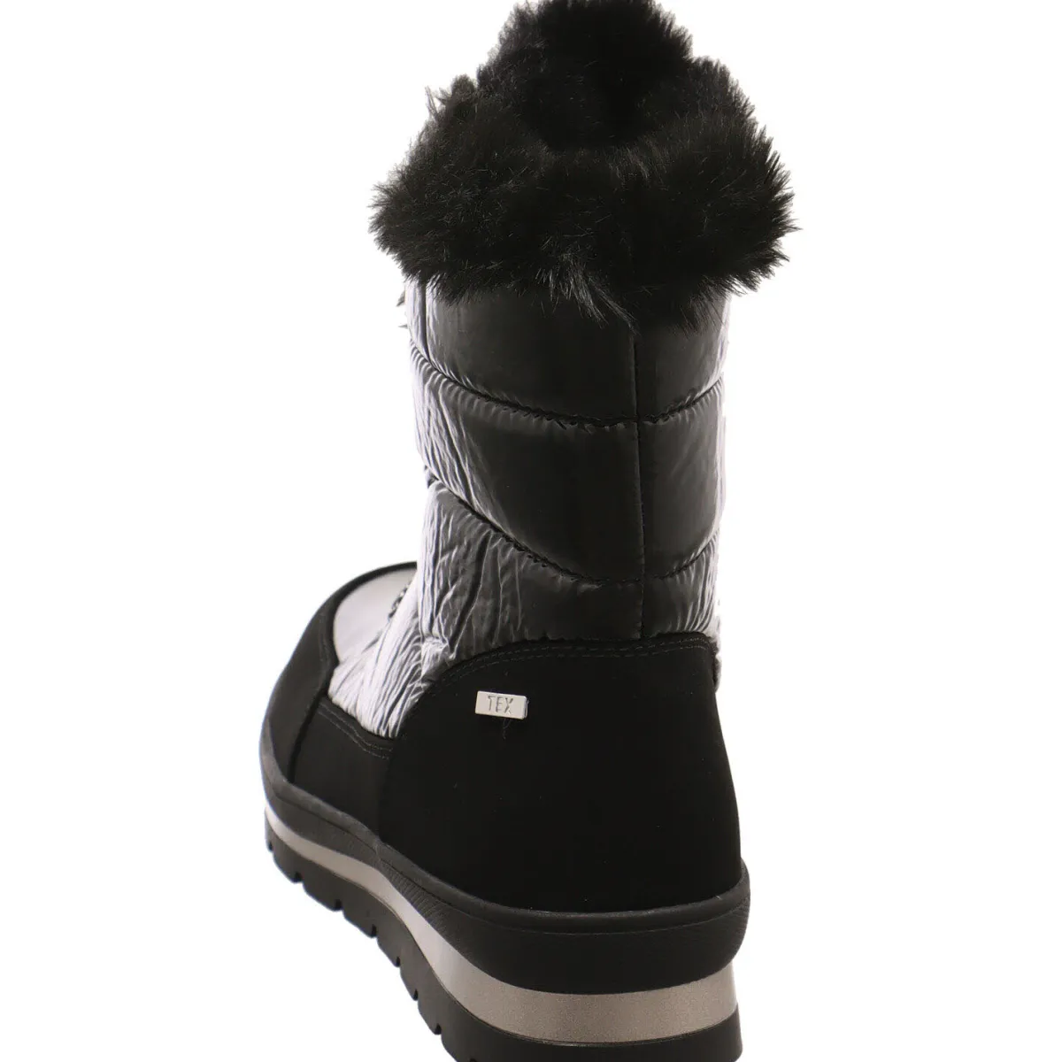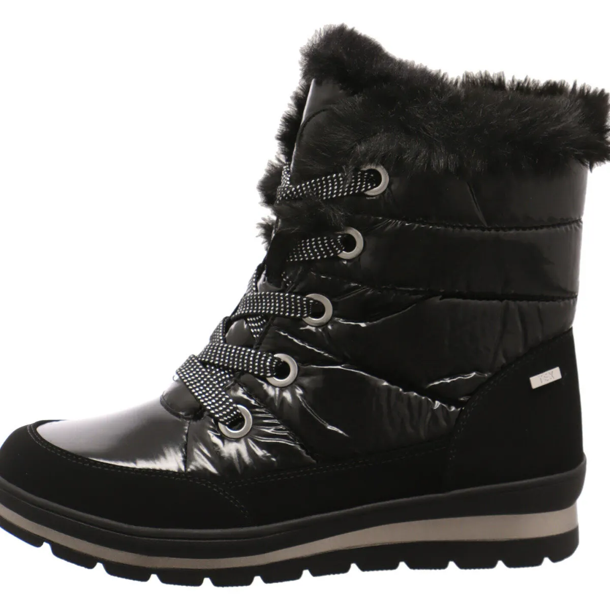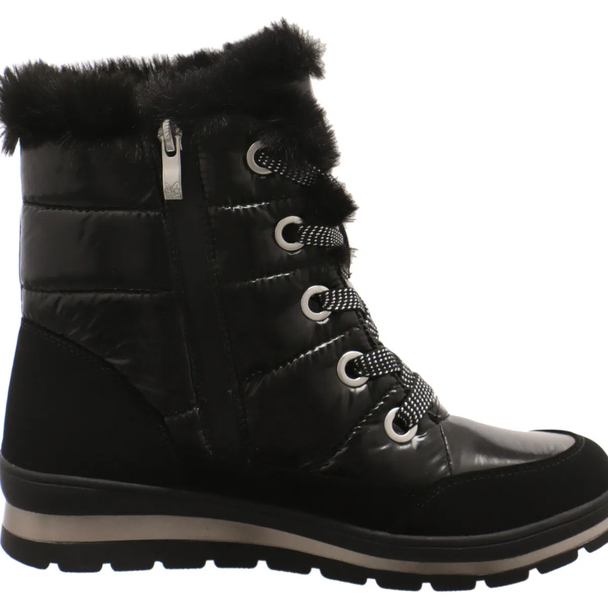 Der Schaft ist aus gestepptemTextil in einer glänzenden Lackoptik gefertigt. Zusätzlich ist der Schuh mit einem funktionalen Reißverschluss versehen, was den Enstieg besonders einfach und komfortabel macht.
