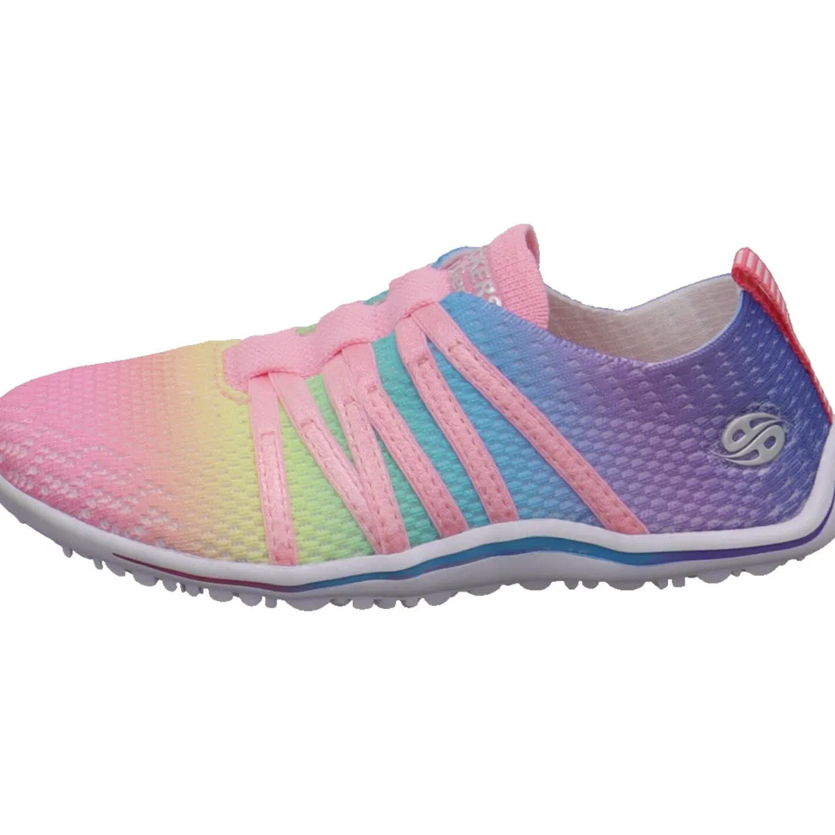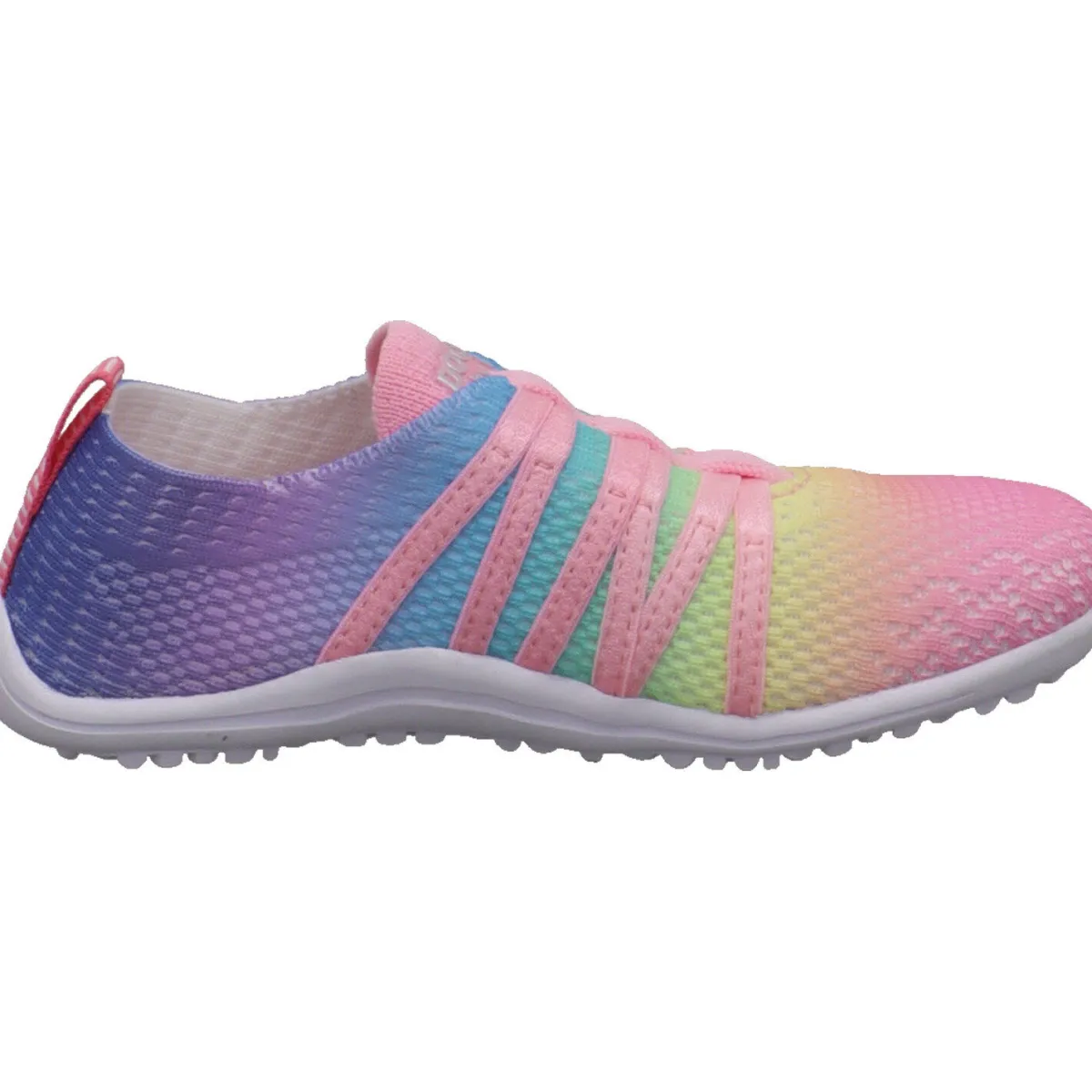 Er wurde aus Textil gefertigt und begeistert jedes Mädchen durch den tollen Farbverlauf in Pastell Farben wie Rosa, Grün und Blau. Er ist besonders leicht und flexibel und durch die Lasche an der Ferse und den Gummibändern über dem Rist, ist der Einstieg ganz einfach. Die Laufsohle ist besonders dünn gearbeitet und die Innensohle kann entnommen werden. So entsteht das gewünschte Barfußgefühl und unterstützt die natürliche Fuß Bewegung.