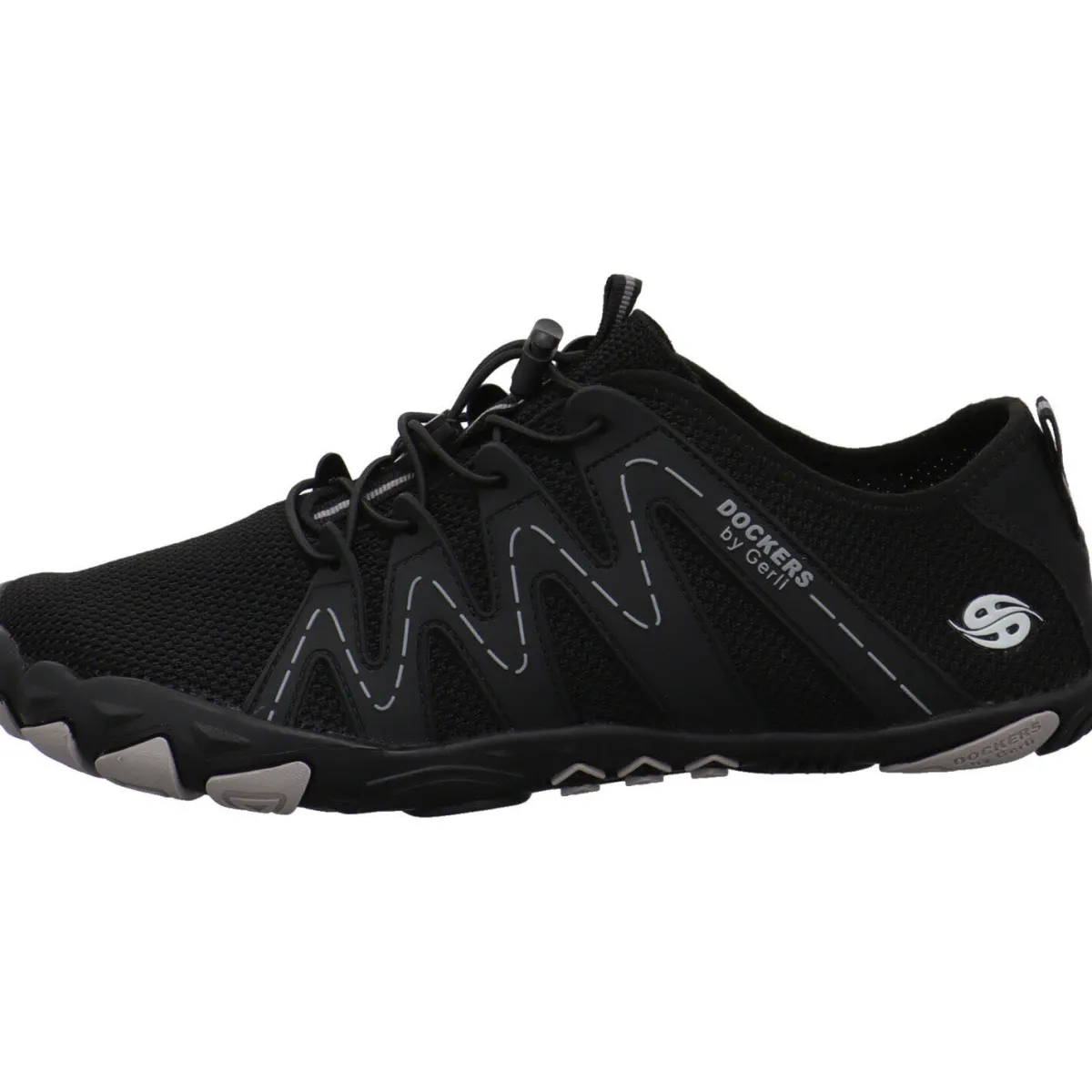 Das Textil Gewebe in Schwarz, ist ausgesprochen flexibel und wird durch die Synthetik Einsätze der Schnürung toll in Szene gesetzt. Durch die automatische Gummischnürung kannst du ihn genau an deinen Fuß anpassen und mit den Laschen am Schaft ist der Einstieg sehr leicht. Der Zehenbereich ist großzügig gearbeitet und bietet deinem Fuß viel Platz und Bewegungsfreiheit. Die Laufsohle ist besonders dünn und flexibel gearbeitet und die Innensohle lässt sich entnehmen. So hast du das optimale Barfuß Gefühl und unterstützt die natürliche Fuß Bewegung.