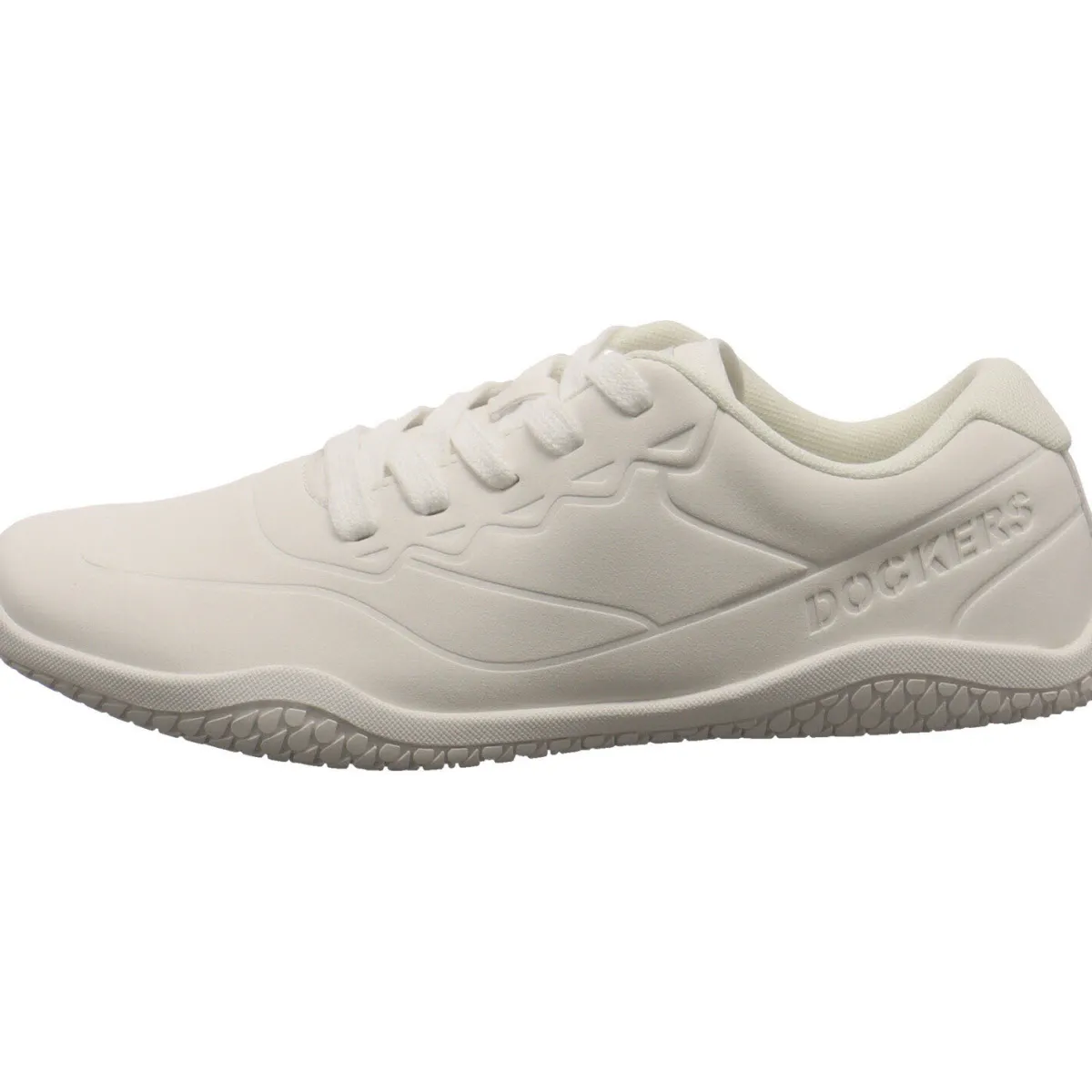 Das Obermaterial wurde aus einem pflegeleichten Kunstleder in weicher Nubukoptik in Weiß gefertigt und wurde mit der Dockers Markenaufschrift an der Seite versehen, welche ein echter Hingucker ist.