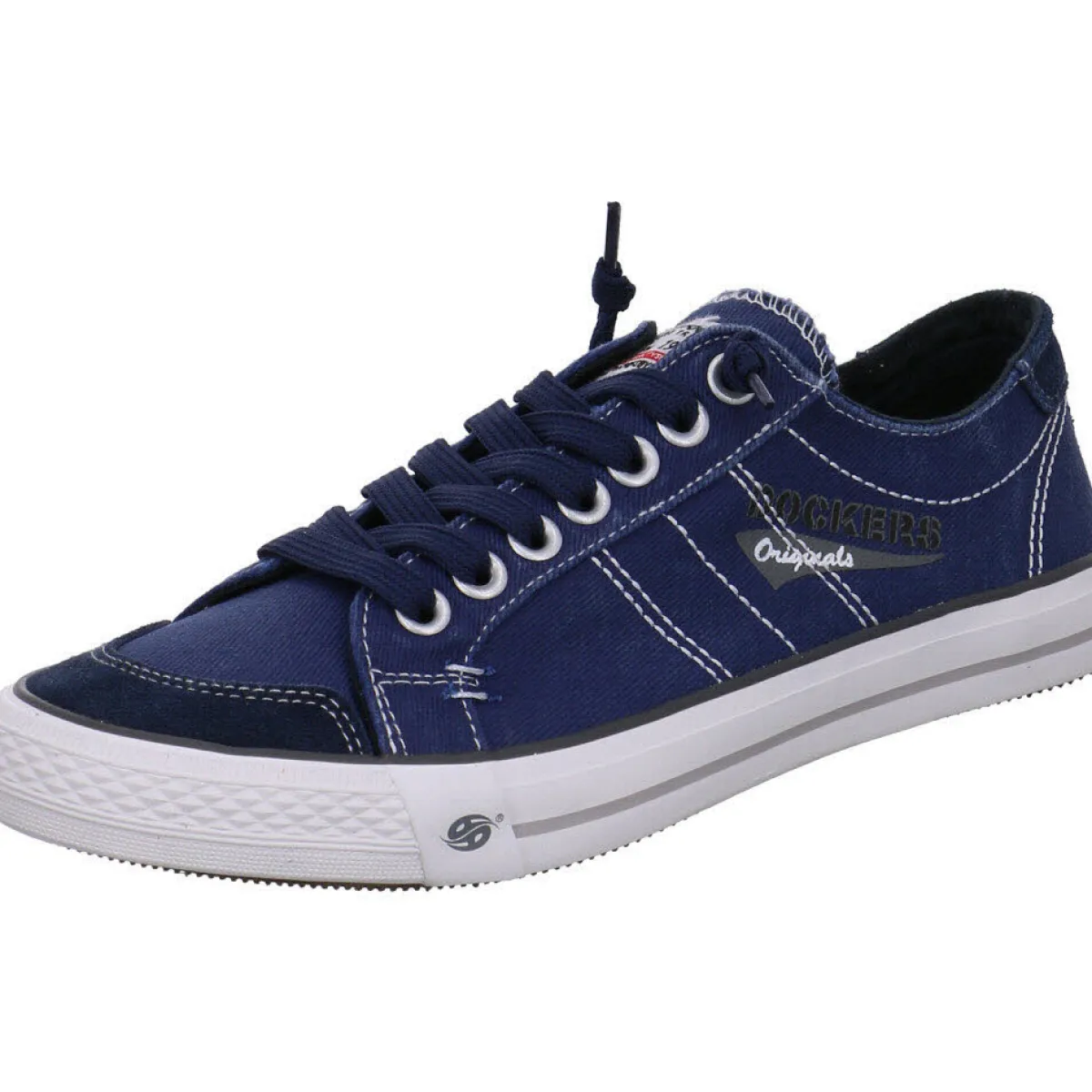 Der aus pflegeleichtem Textil in Blau gefertigte Schnürschuh bietet absoluten Komfort beim Gehen und das textile Innenfutter sorgt für angenehmen Tragekomfort. An der Ferse und Schuhspitze sind Einsätze aus Veloursleder zu finden. Helle Ziernähte und ein Dockers Print runden das sportliche Design gekonnt ab. Die Laufsohle in Weiß verleiht ihm den typischen Sneakerlook. Die Schnürung hilft bei einem leichten Ein- und Ausstieg. Die flexible Gummi Außensohle ist zudem rutschhemmend und ermöglicht einen tollen Laufkomfort.