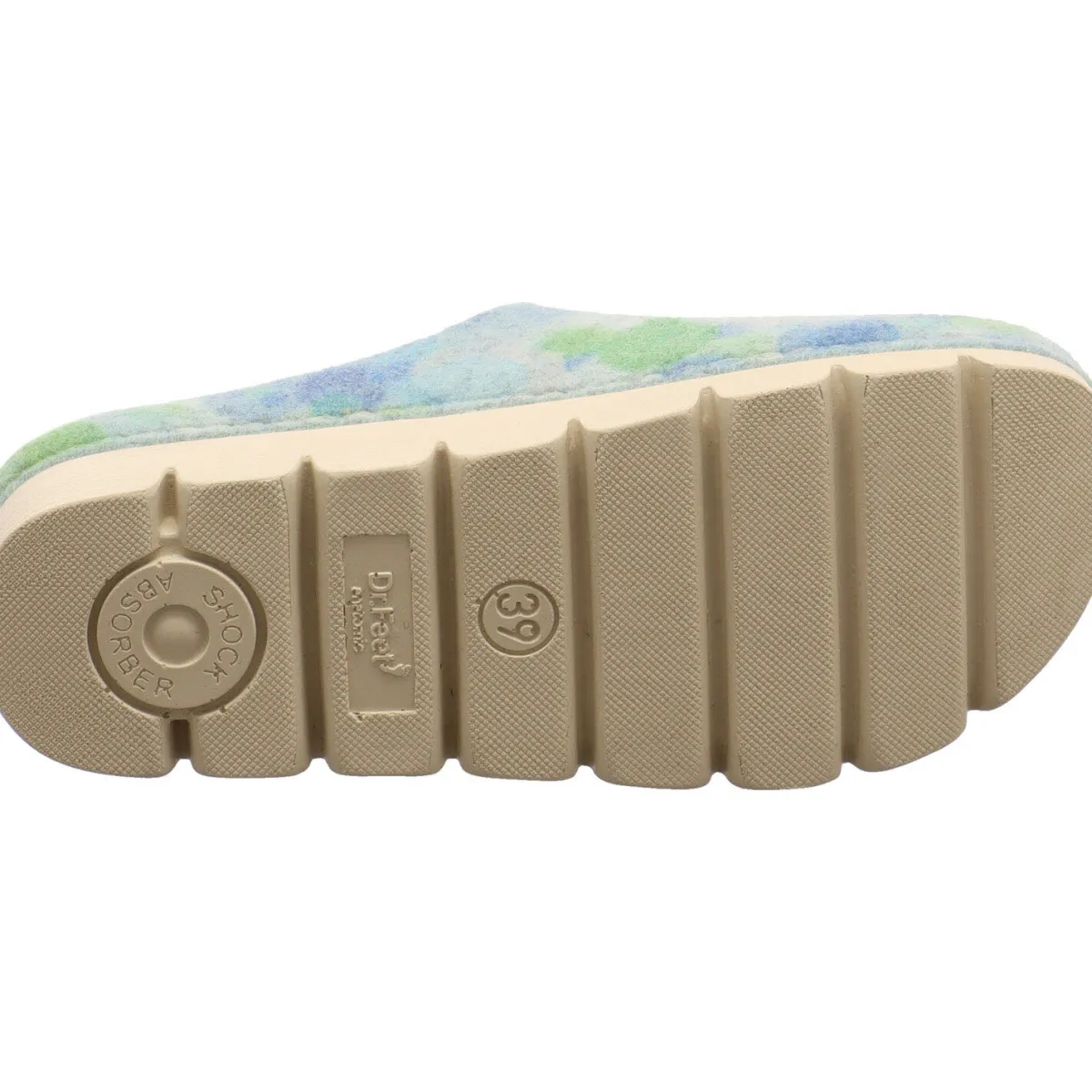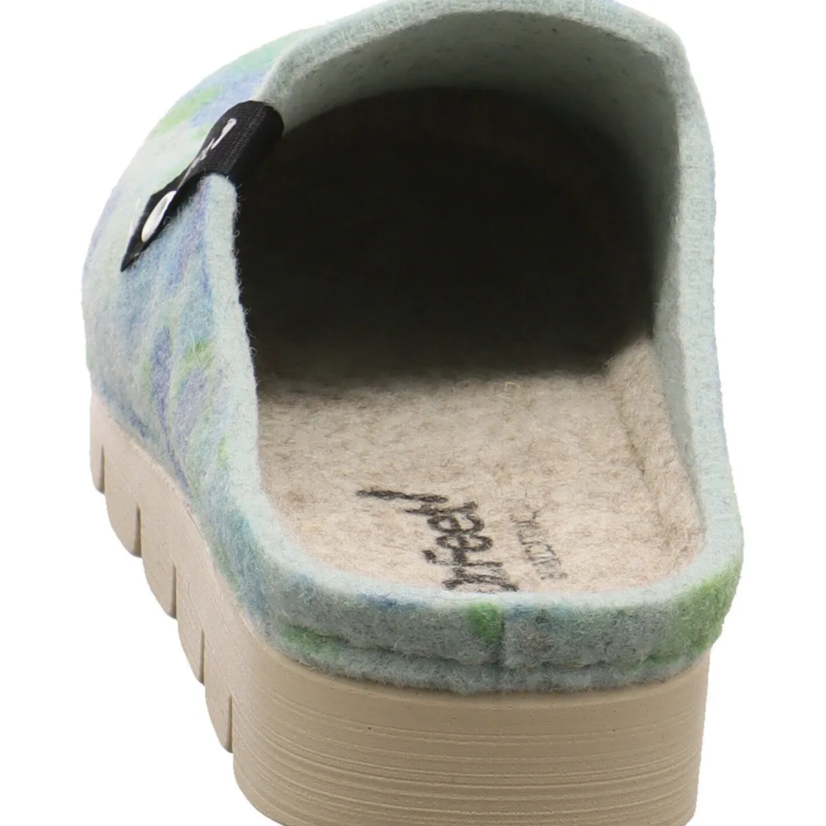 Das Obermaterial aus temperaturausgleichendem Naturwollfilz, fällt durch die tolle Farbgebung in Blau mit Grün direkt ins Auge. Das Material ist umweltfreundlich und recycelbar.