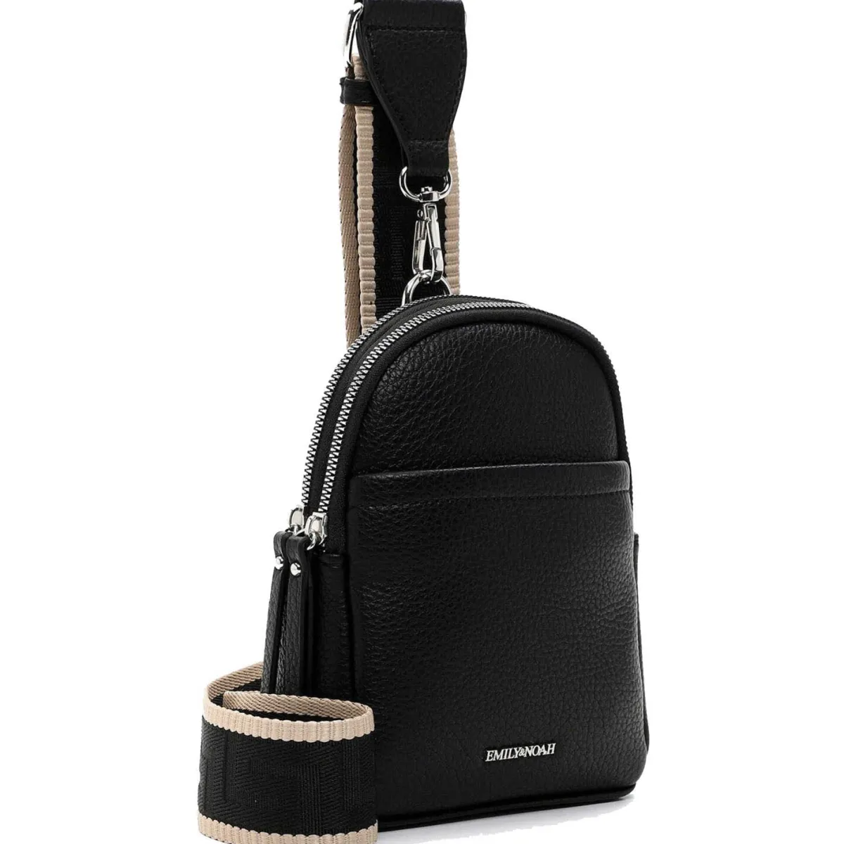 Edel verarbeitetes Kunstleder in Schwarz wurde mit einer angenehmen Haptik versehen, die der Umhängetasche das gewisse Etwas verleiht. Durch den verstellbaren Umhängegurt in Web-Optik kannst du die Tasche auch crossover tragen.