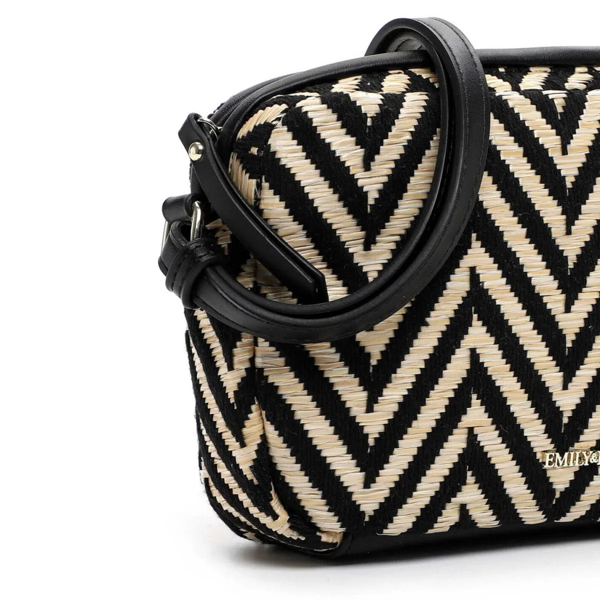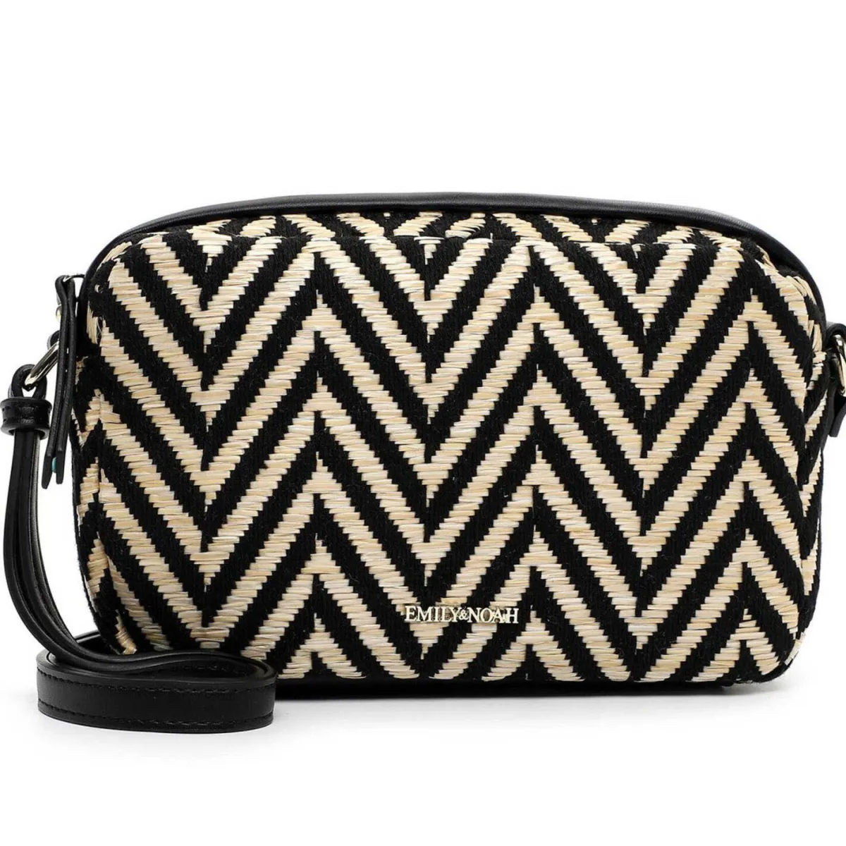 Gefertigt in einem Mix aus Kunstleder und Textil in Schwarz und Taupe Beige, ist sie mit einem schönen Muster versehen. Das kleine kompakte Format bietet Platz für die wichtigsten Dinge.