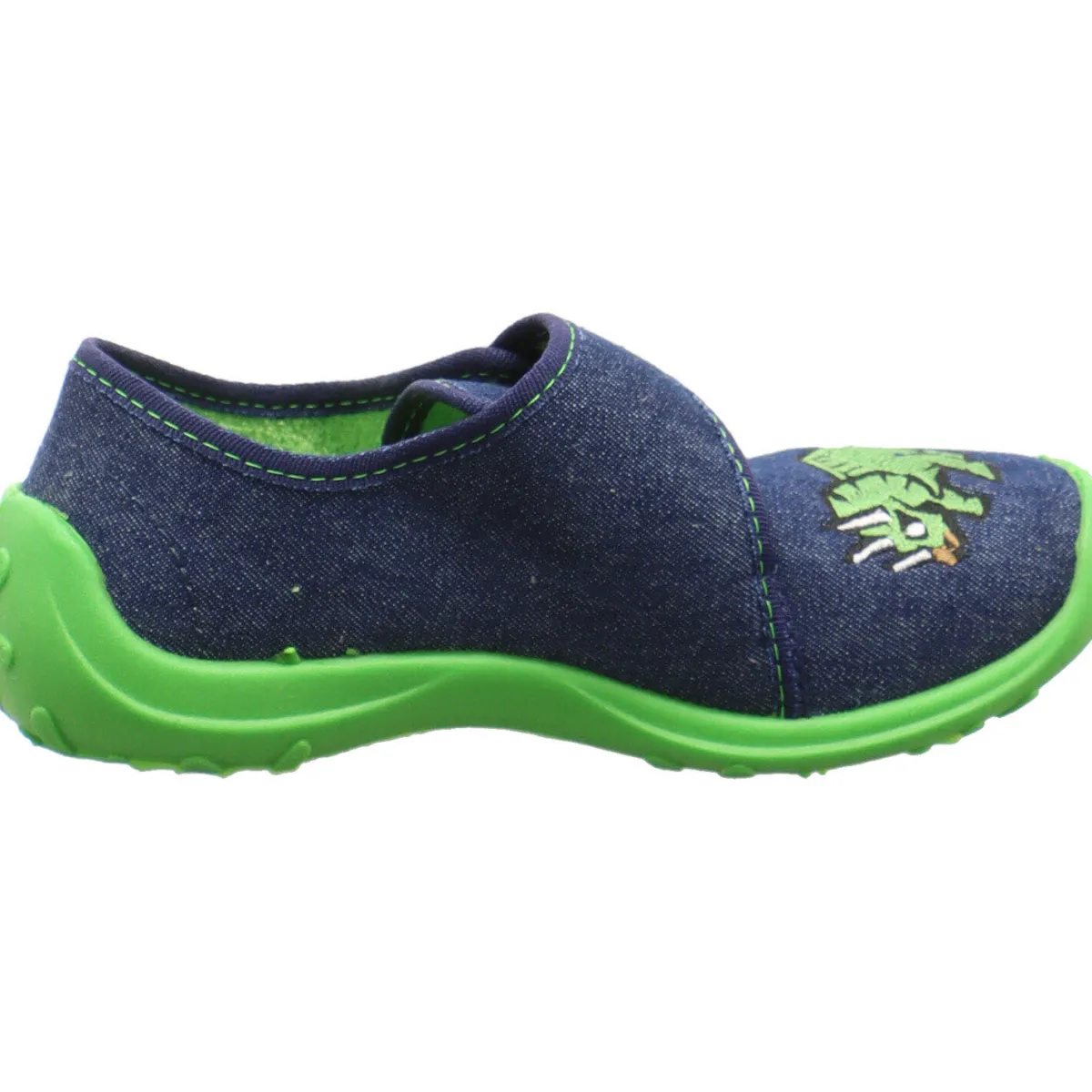 Der Schuh ist aus strapazierfähigem Textil in Jeans Blau gefertigt, innen leicht frottiert und sehr leicht. Zudem lässt er sich durch den seitlichen Klettverschluss leicht an- und ausziehen, was beim Spielen oft von Vorteil ist. Die Touch Me Decksohle ist extra gepolstert um ein angenehmes Tragen zu gewährleisten. Die stabile Sohle in Grün ist leicht profiliert, dennoch flexibel und zudem leicht perforiert, was eine optimale Luftzirkulation im Schuh ermöglicht.