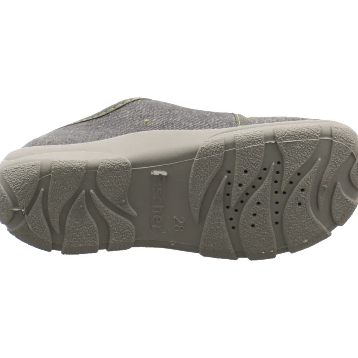 Der Schuh ist aus strapazierfähigem Textil in Grau mit Details in Orange gefertigt, innen leicht frottiert und sehr leicht. Zudem lässt er sich durch den seitlichen Klettverschluss leicht an- und ausziehen, was beim Spielen oft von Vorteil ist.