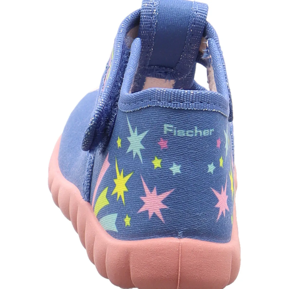 Es wurde aus strapazierfähiger Baumwolle in Blau gearbeitet. Auf dem Blatt ist ein niedliches Einhorn als Print und an der Ferse findest du kleine Sterne in Pastell Farben dazu. Durch den seitlichen Klettverschluss ist das An- und Ausziehen ein Kinderspiel. Der leicht erhöhte Schaft gibt den notwendigen Halt. Das Innenfutter ist aus angenehm weichen Frottee Futter gearbeitet. Kleine Cutouts und die Perforierung der Laufsohle sorgen zusätzlich für eine optimale Belüftung. Die Flexi-B Gummilaufsohle ist rutschhemmend und dennoch super flexibel und leicht.