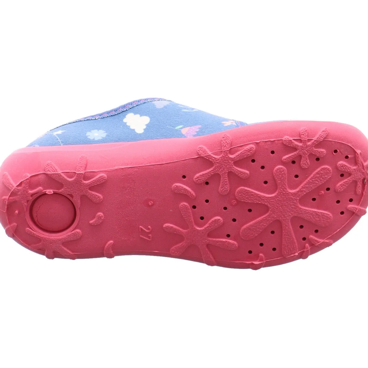 Auf dem Blatt ist ein niedliches Einhorn als Print und und kleine Blumen rund um den Schuh. Durch den seitlichen Klettverschluss ist das An- und Ausziehen ein Kinderspiel. Das Innenfutter ist aus angenehm weichen Frottee Futter in Pink gearbeitet. Die Perforierung der Laufsohle sorgen zusätzlich für eine optimale Belüftung. Die Gummilaufsohle ist rutschhemmend und dennoch super flexibel und leicht.