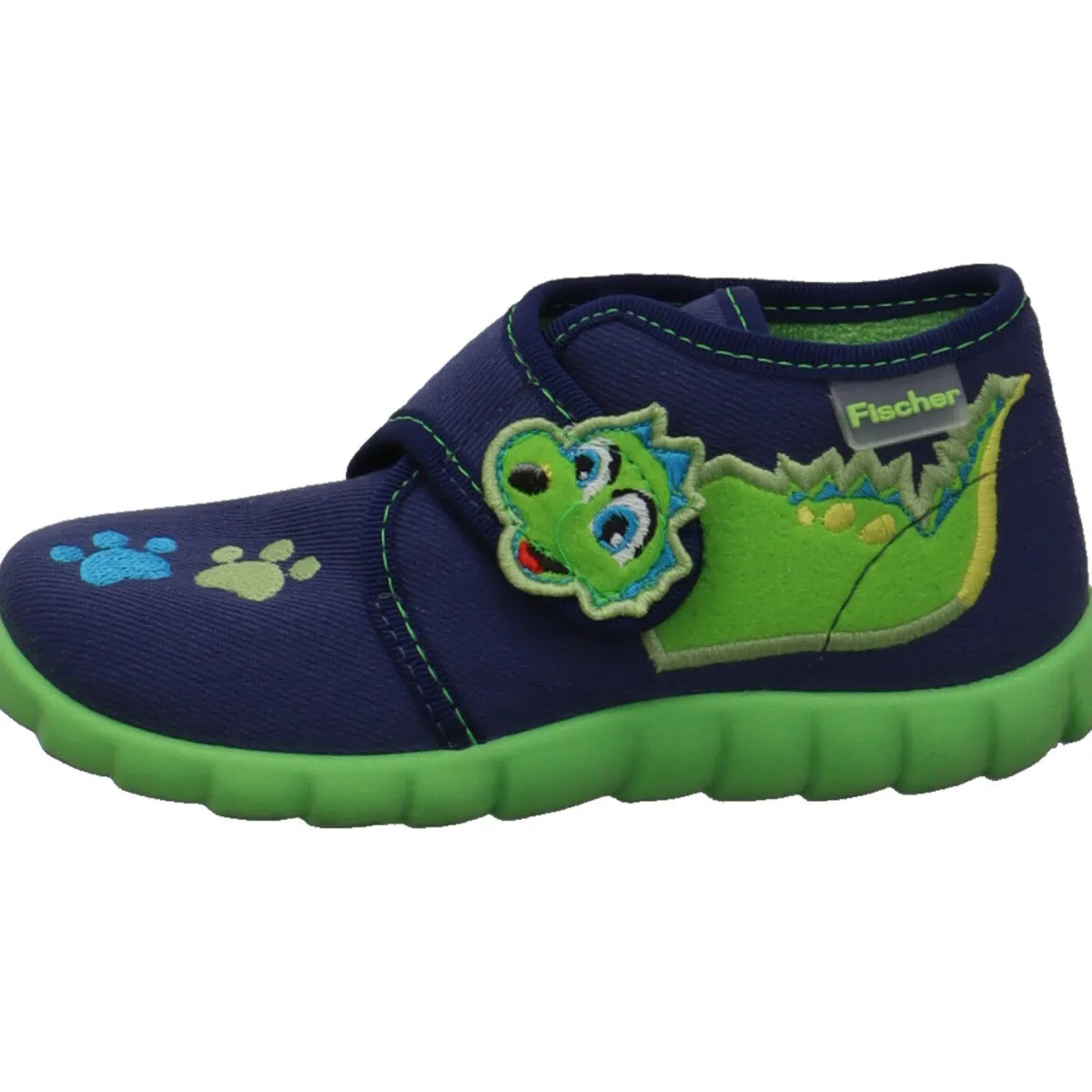 Auf dem Blatt sind zwei Pfotenabdrücke zu sehen. Des Frottee Innenfutter sorgt für ein tolles Tragegefühl und die TouchMe Innensohle ist gepolstert und extra weich. Die Gummilaufsohle in Grün, ist besonders flexibel und perforiert und sorgt so für eine optimale Belüftung.