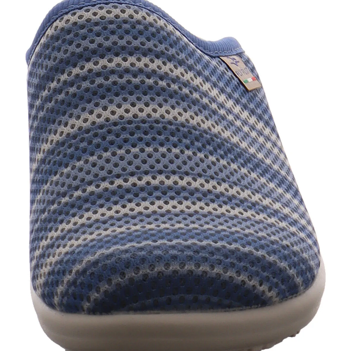 Er ist aus hochwertigem Obermaterial aus Textil Mesh in Blau mit Weiß im Streifen Design gefertigt.