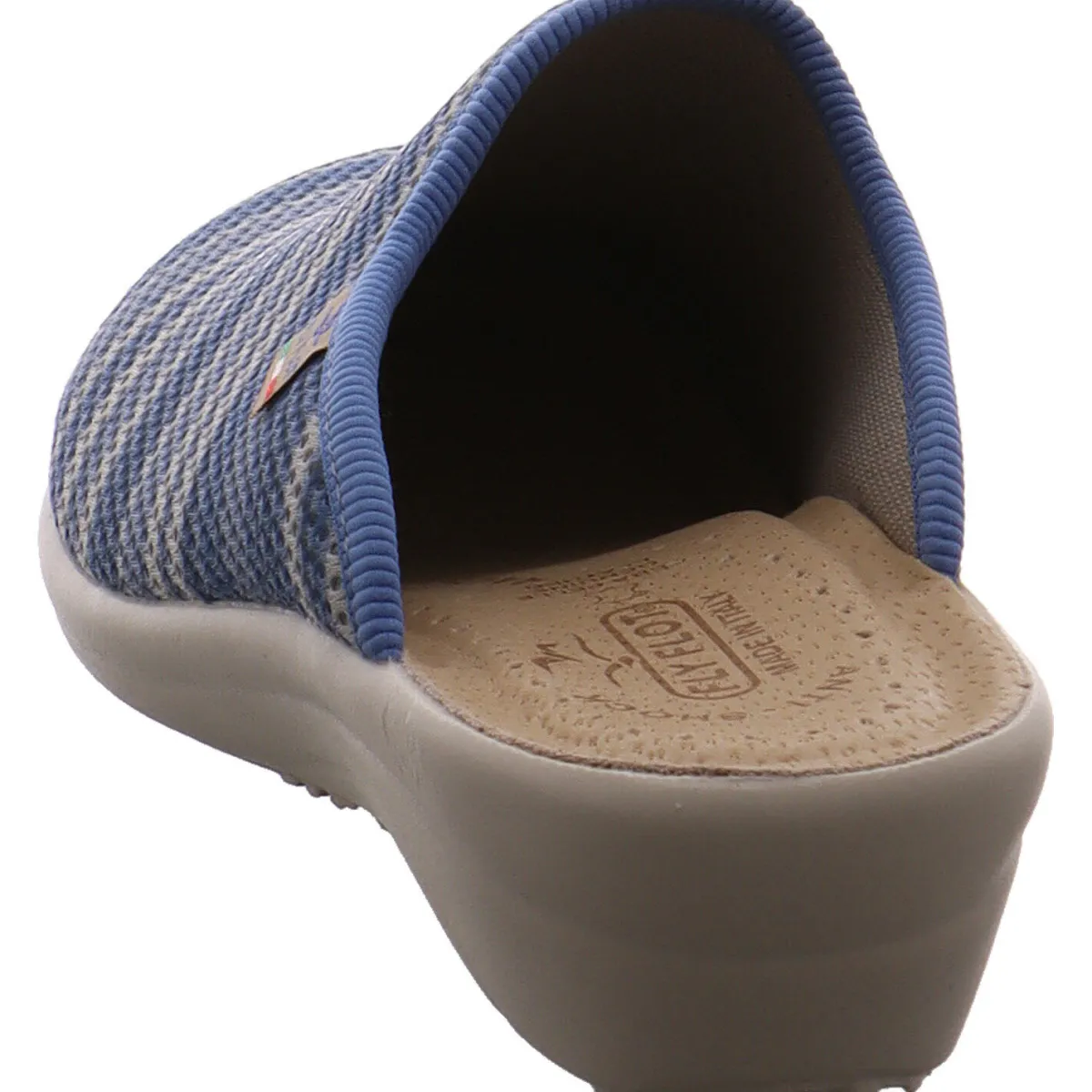 Die leicht profilierte Synthetik Laufsohle mit Keilabsatz gibt guten Halt in Haus und Hof.