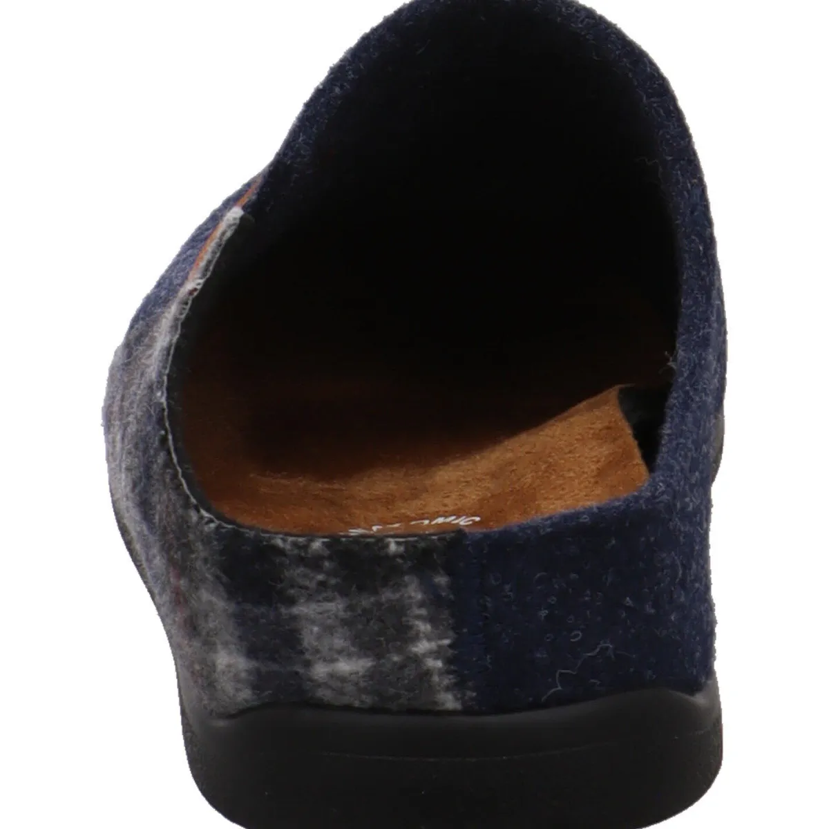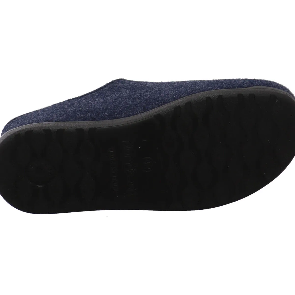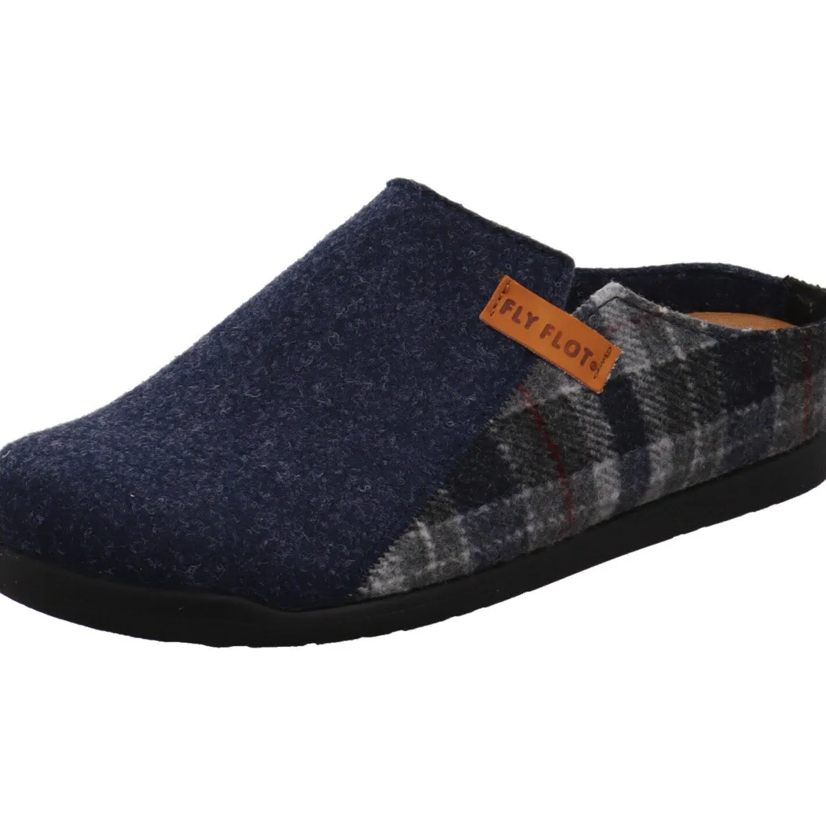 Das Filz Material in Blau ist an der Seite mit einem Karo Muster versehen. Die anatomisch gearbeitete Innensohle hat eine Anti Shock Funktion und ist besonders bequem. Die Gummisohle gibt guten Halt und ist besonders leicht.