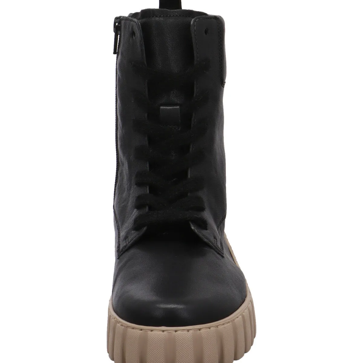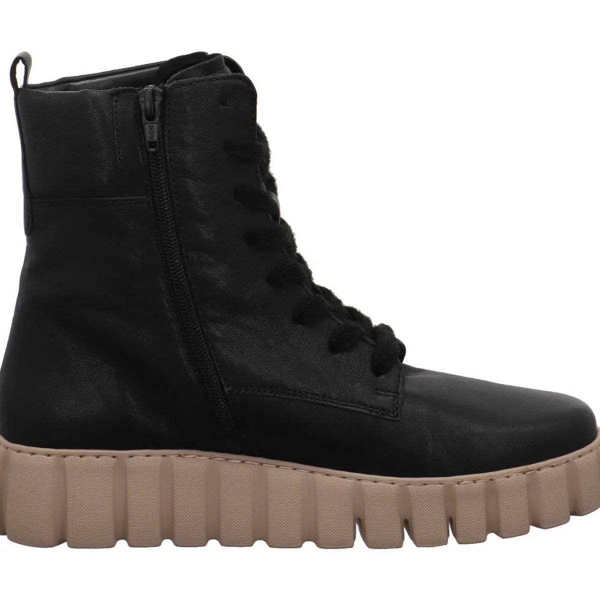 Eyecatcher ist die flache Plateausohle mit ihrer individuellen Profilierung und der Kontrastfarbe Beige.