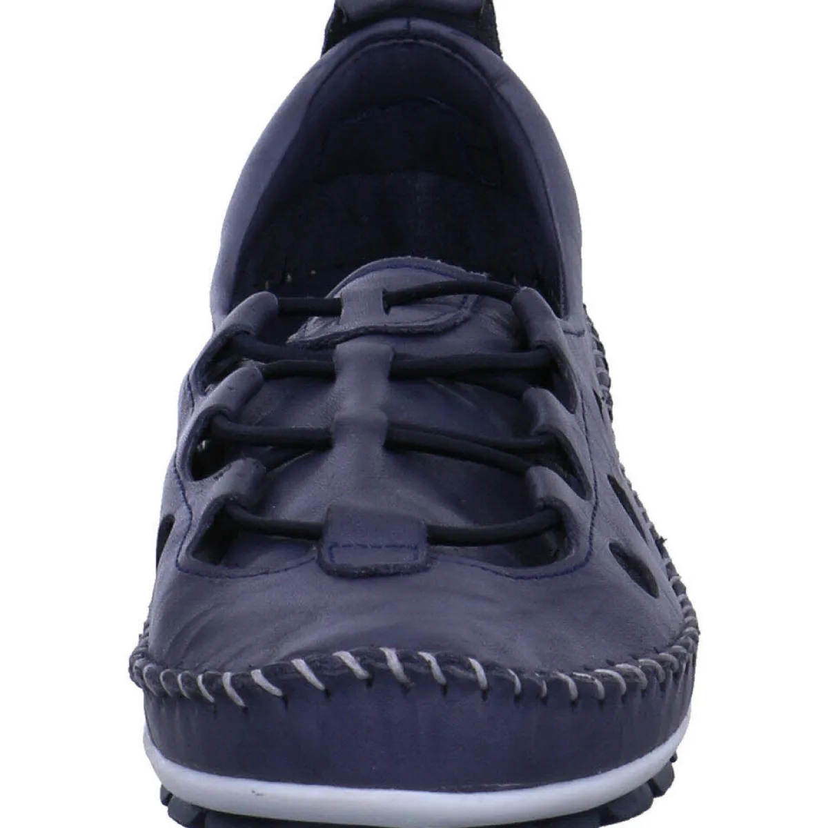 Das Obermaterial aus hochwertigem weichen Echtleder in Blau ist mit einer Ziernaht in Weiß umrandet und verleiht dem Schuh einen sportlichen Look. Ein weiteres Highlight sind die Gummischnürung und die seitlichen Cutouts.