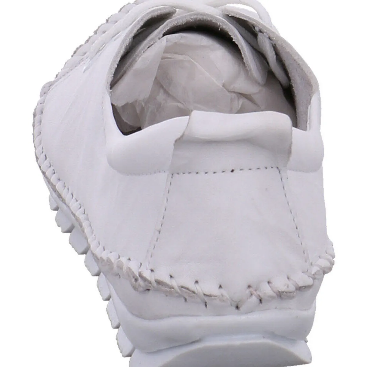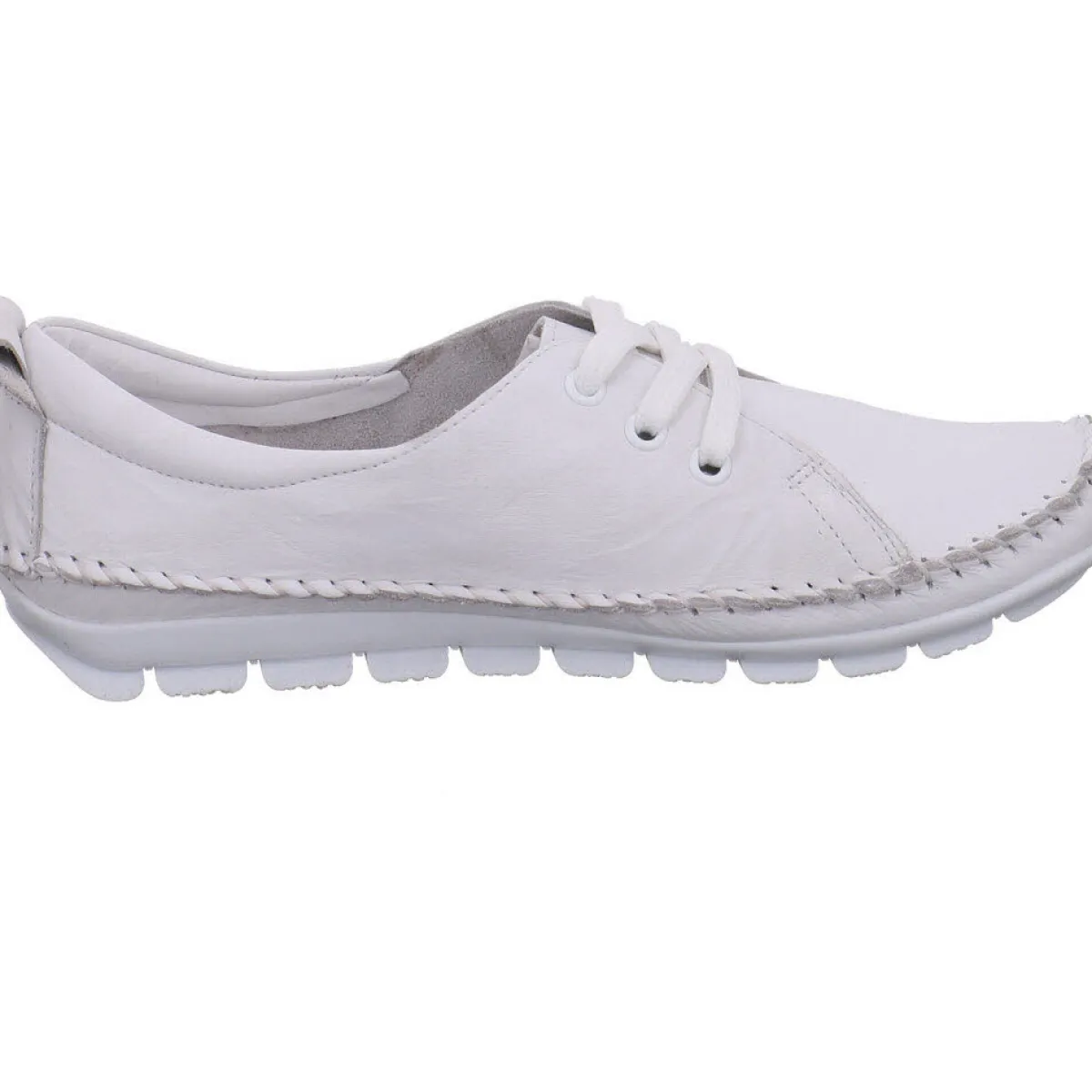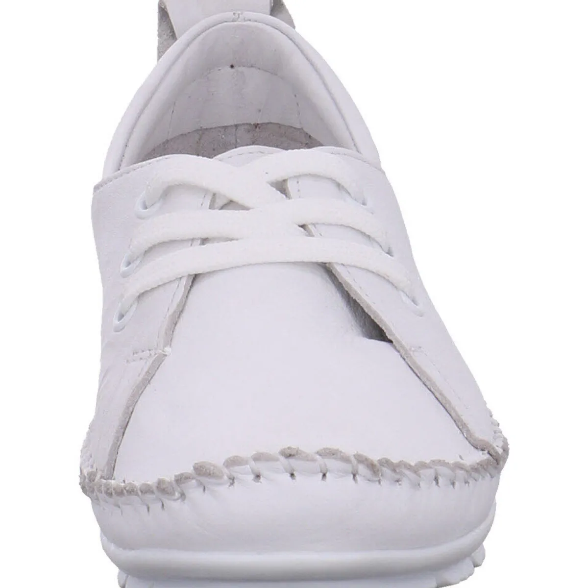 Das Obermaterial aus hochwertigem weichen Echtleder in Weiß ist mit einer Ziernaht umrandet und verleiht dem Schuh einen sportlichen Look.