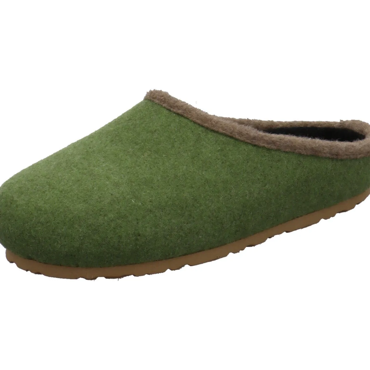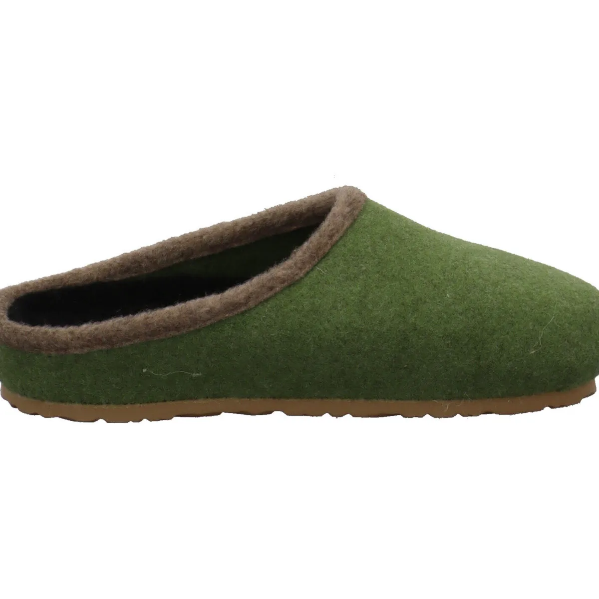 Das Obermaterial aus Filz Schafwolle in Grün ist temperaturausgleichend und robust. Die Synthetiksohle gibt guten Halt, so kommst du auch auf glatten Böden nicht ins Rutschen. Durch das Wechselfußbett eignet sich der Hausschuh auch perfekt für lose Einlagen. Der Schuh ist dabei super leicht.