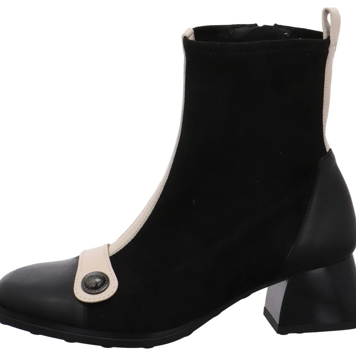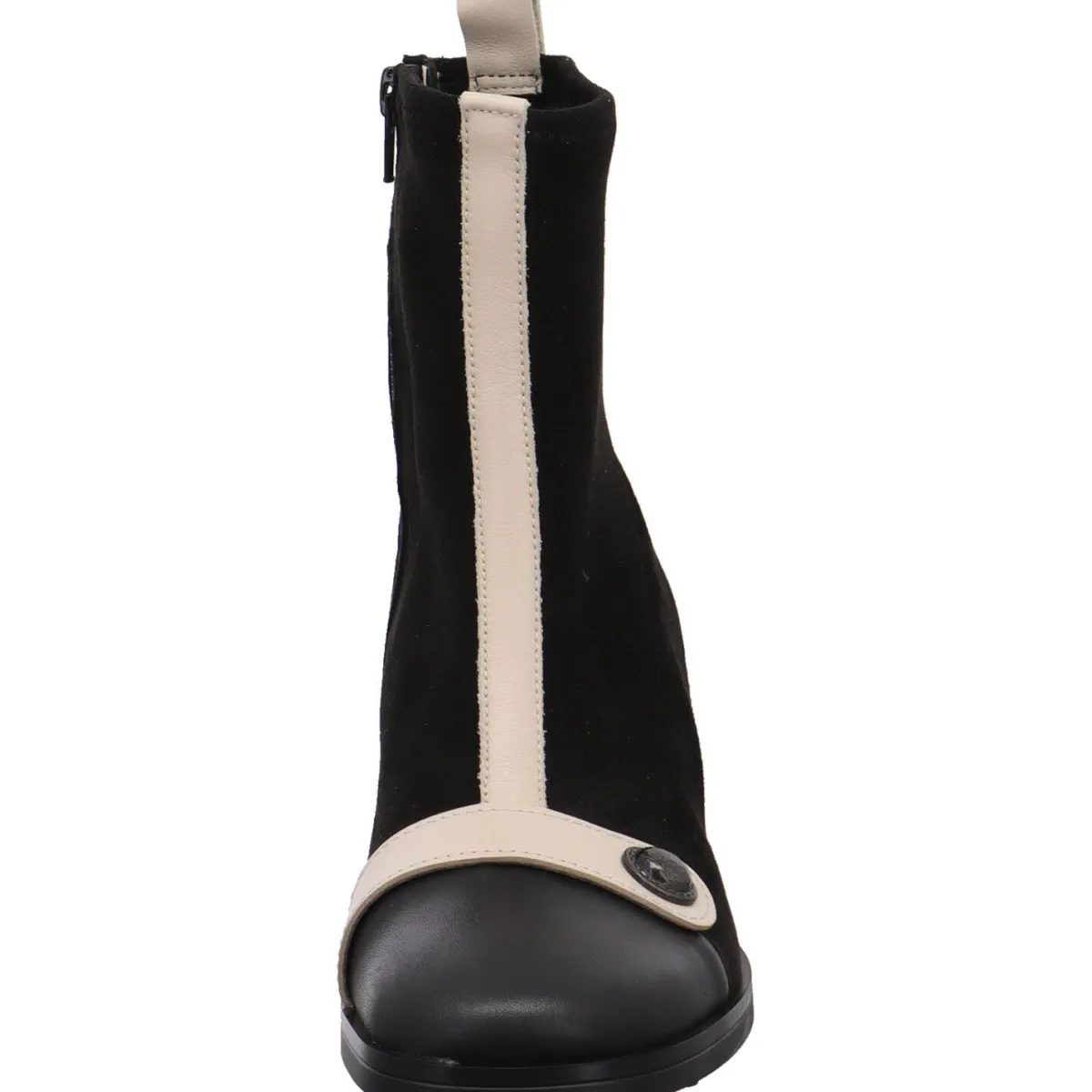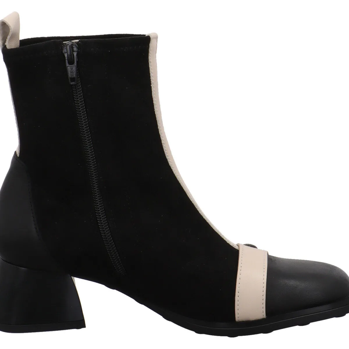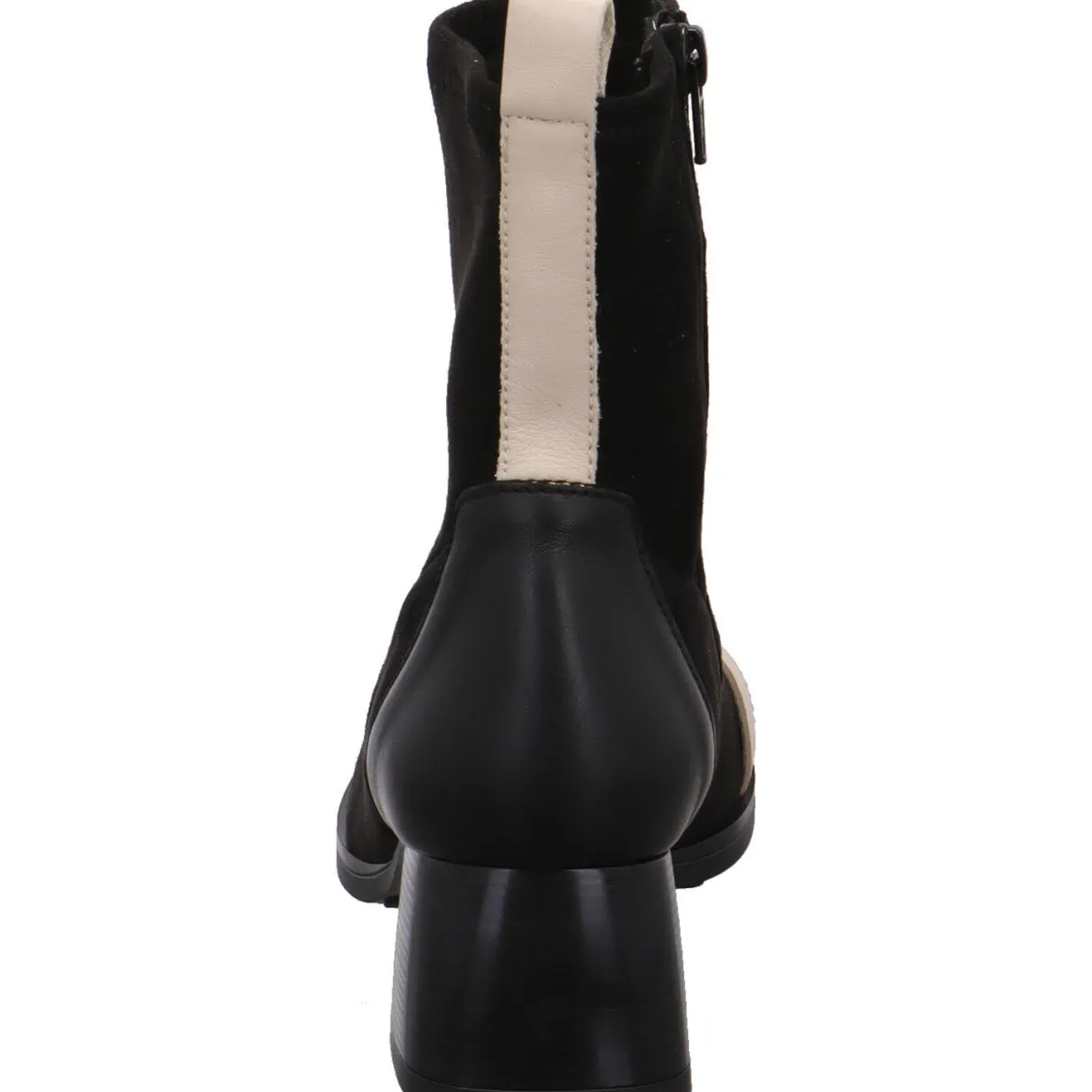 Im Zehenbereich und an der Ferse wurde Echtleder in Schwarz verarbeitet. Der Schaft besteht aus Textil mit Stretch Anteil und ist somit komfortabel und in Verbindung mit dem seitlichen Reißverschluss auch leicht anzuziehen.
