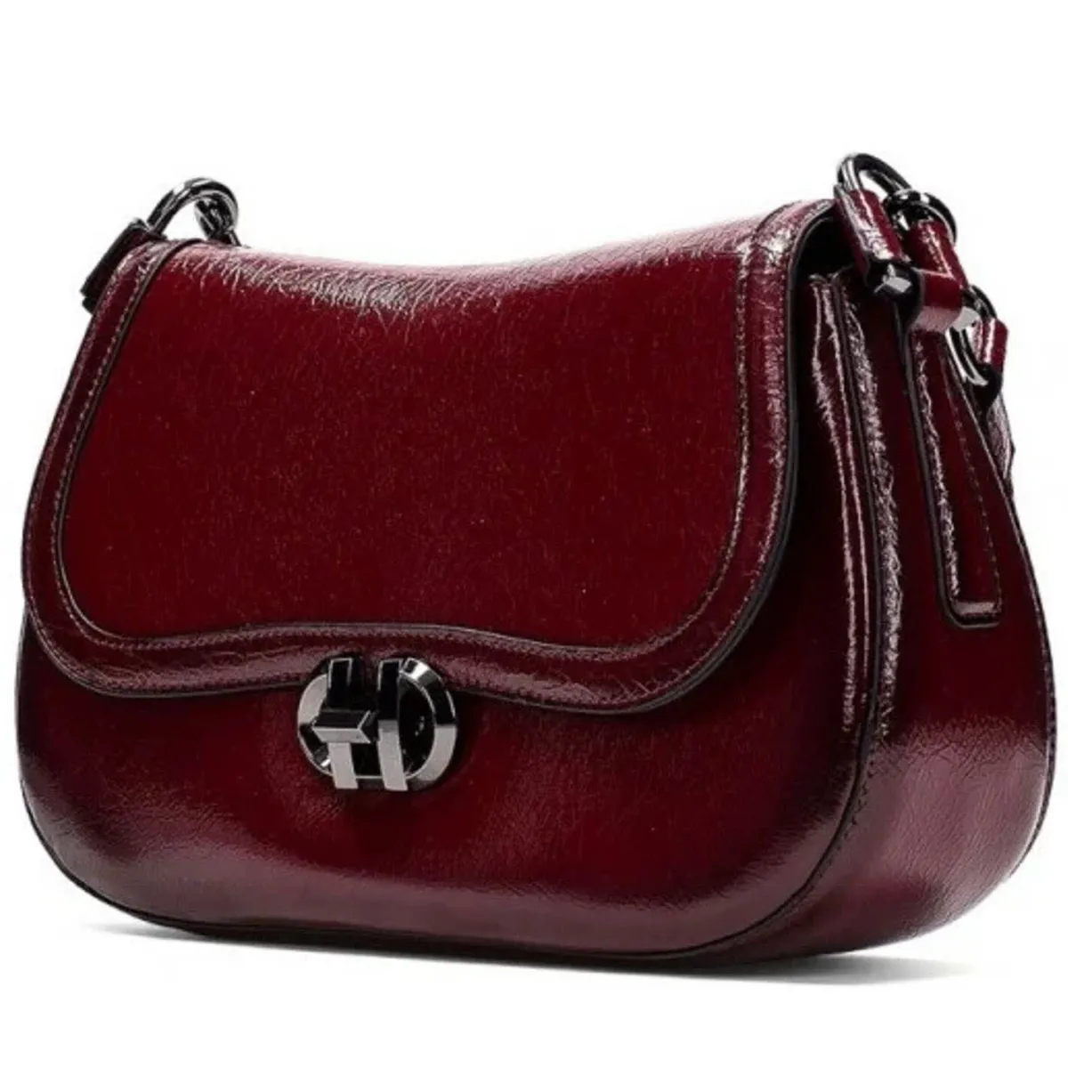 Das Obermaterial dieser Handtasche wurde aus hochwertig verarbeitetem Kunstleder in Rot gefertigt und mit einem glänzenden Lack Finish versehen. Das kompakte Format dieser Tasche in Verbindung mit der raffinierten Dornschließe zieht garantiert die Blicke auf sich.