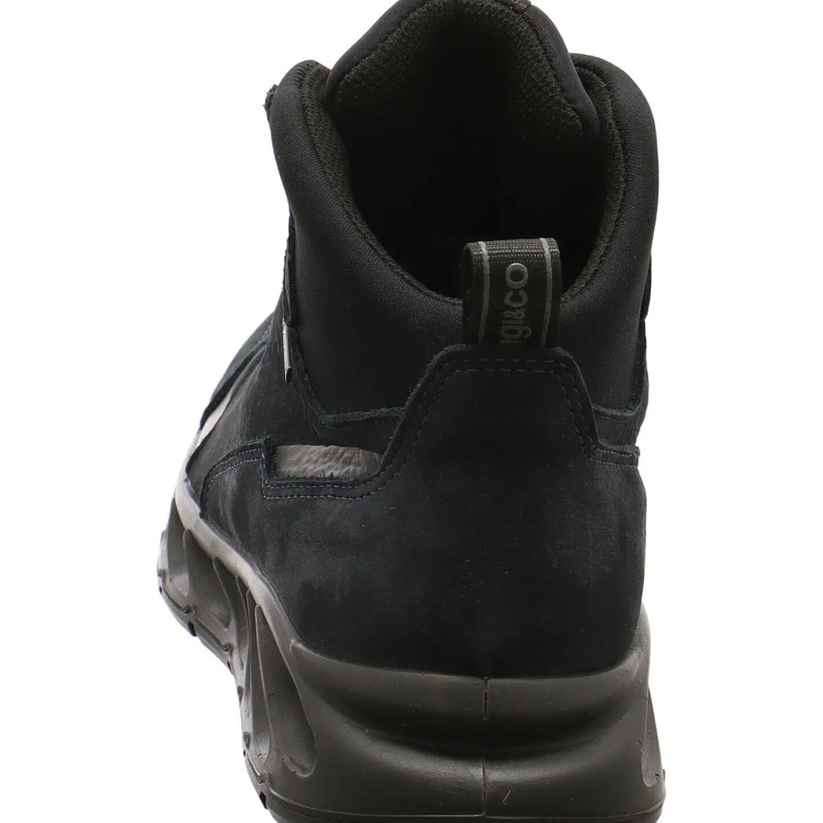 Die Memory Foam Innensohle ist mit Leder überzogen, als Wechselfußbett gearbeitet und sorgt für Dämpfung und schützt den Fuß gleichzeitig vor Belastungen. Der Schuh ist mit einer Gore-Tex Membran gearbeitet, wodurch er wasserdicht und winddicht wird. Regen und Schnee meistert er ohne Probleme. Die modisch gestaltete Laufsohle ist mit einem Stoßdämpfer versehen und macht das Laufen besonders komfortabel.