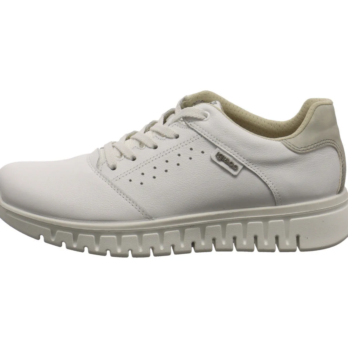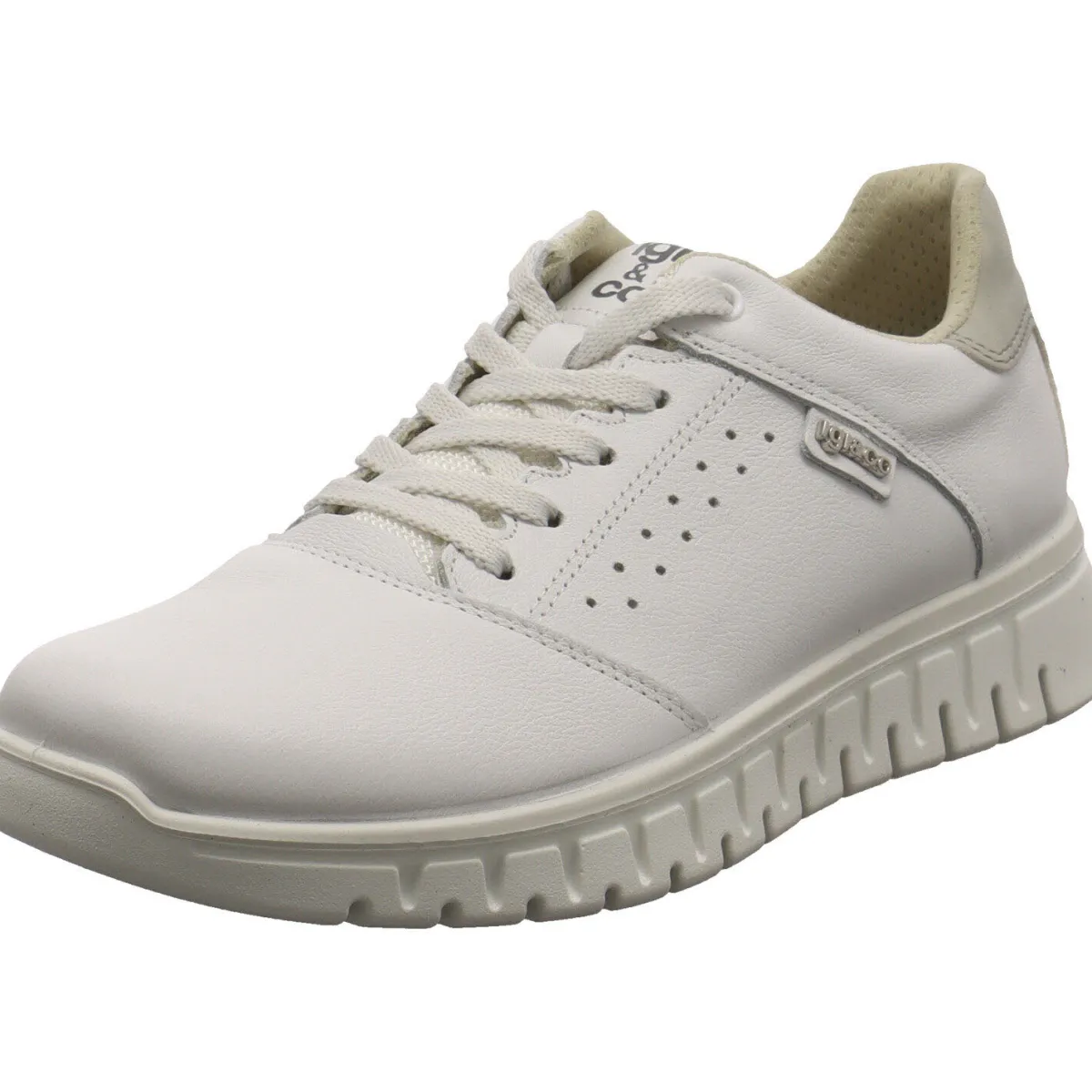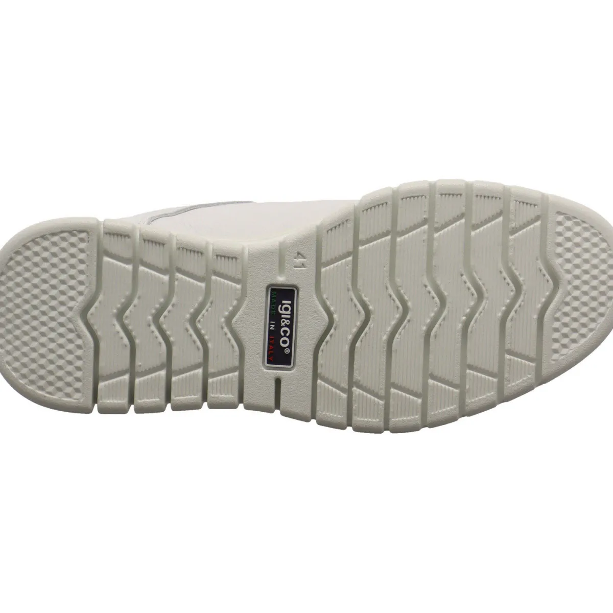 Gefertigt wurde der Sneaker für Herren hochwertigem, genarbtem Echtleder in klassischem Weiß, mit einem Einsatz am Schaft, der sich in hellem Grau präsentiert.
