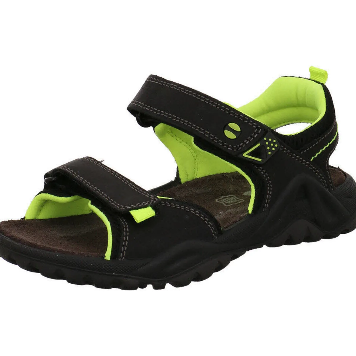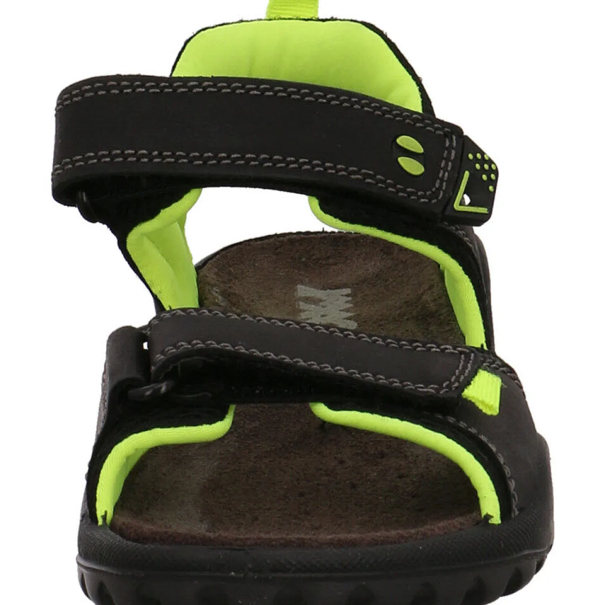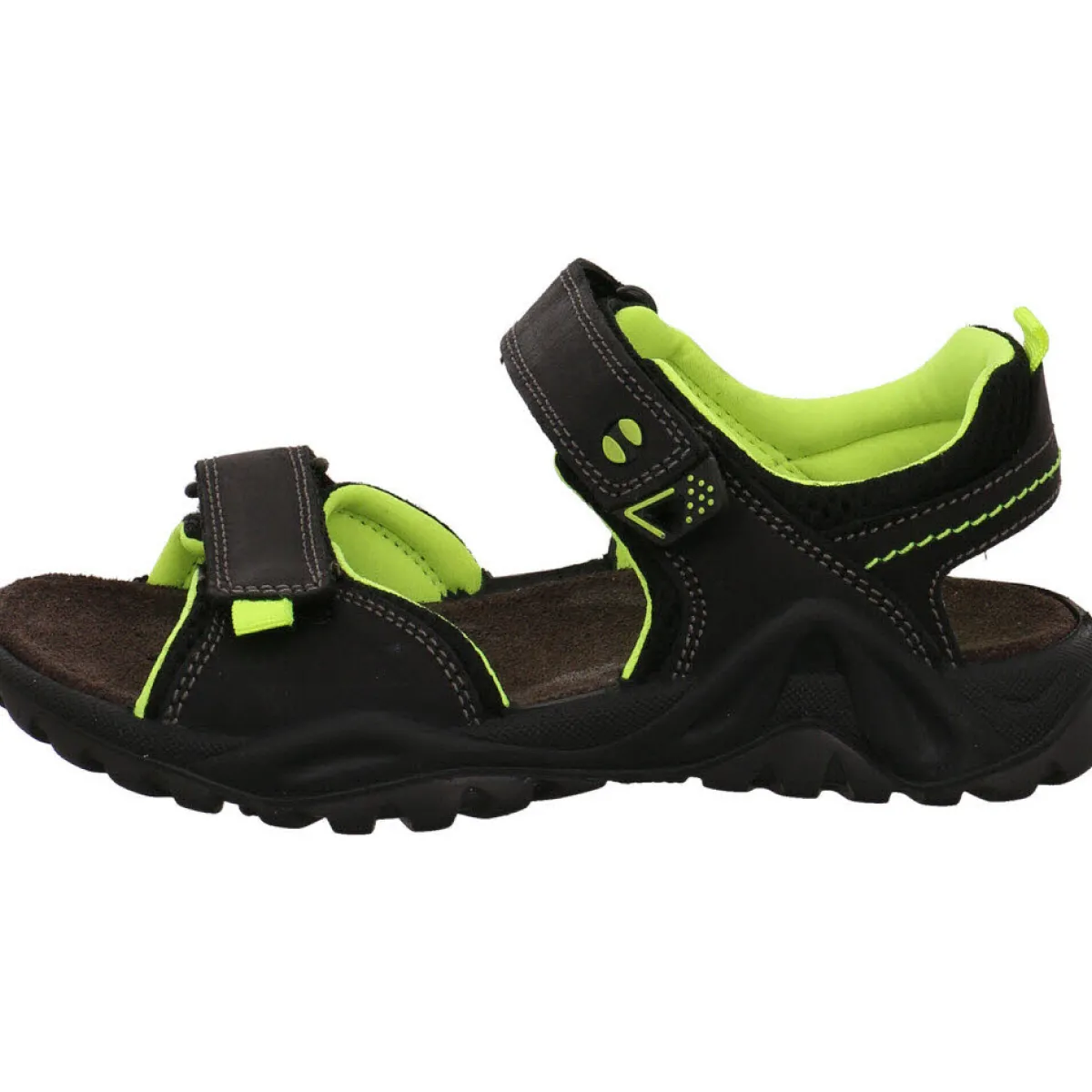 Gefertigt aus einem Mix aus Leder und Textil Mesh in Schwarz bietet er ein angenehmes Tragegefühl. Aufgelockert wird das Design durch Ziernähte und Farbakzente in Neon Gelb. Durch den doppelten Klettverschluss lässt der Schuh im Trekking Look sich optimal dem Fuß anpassen.