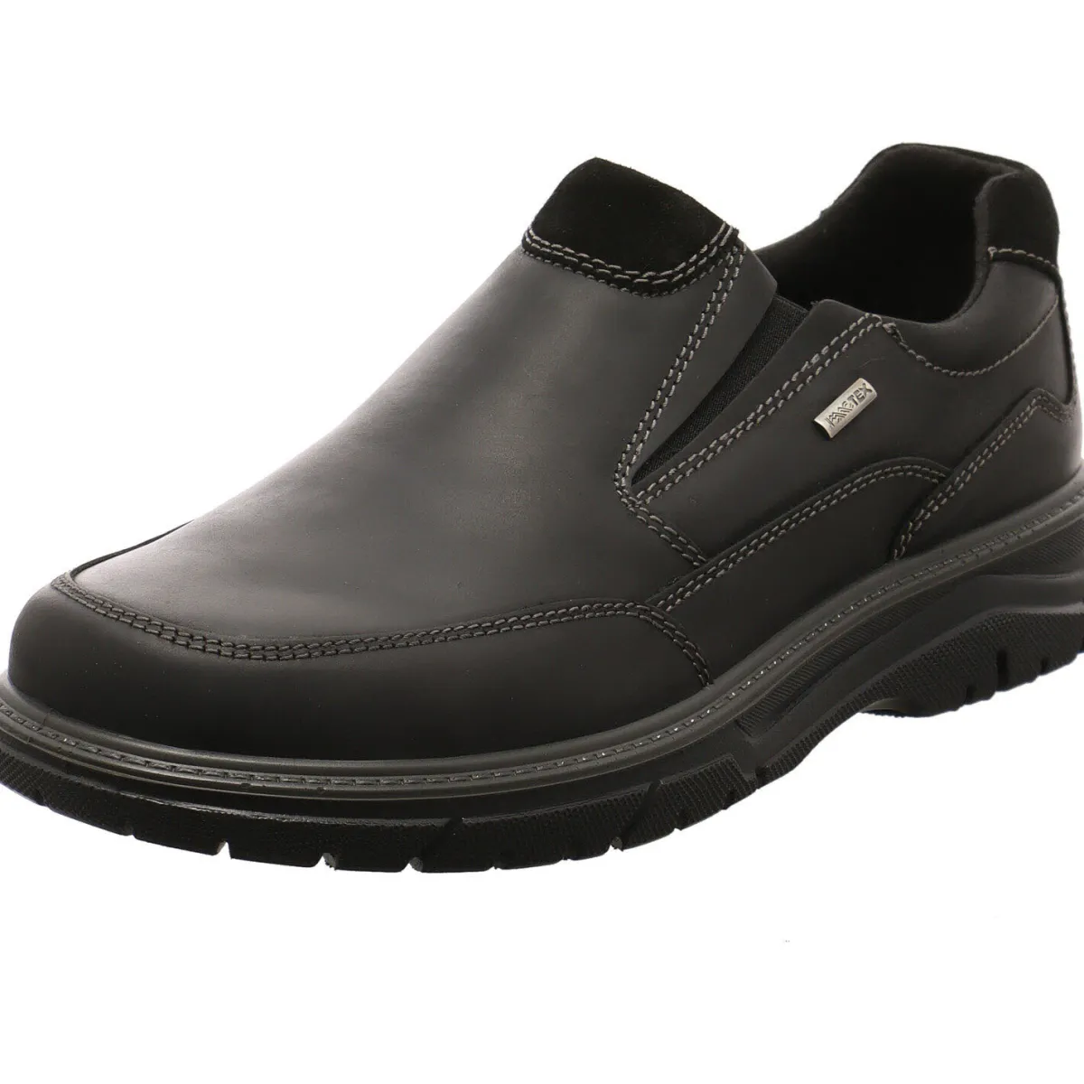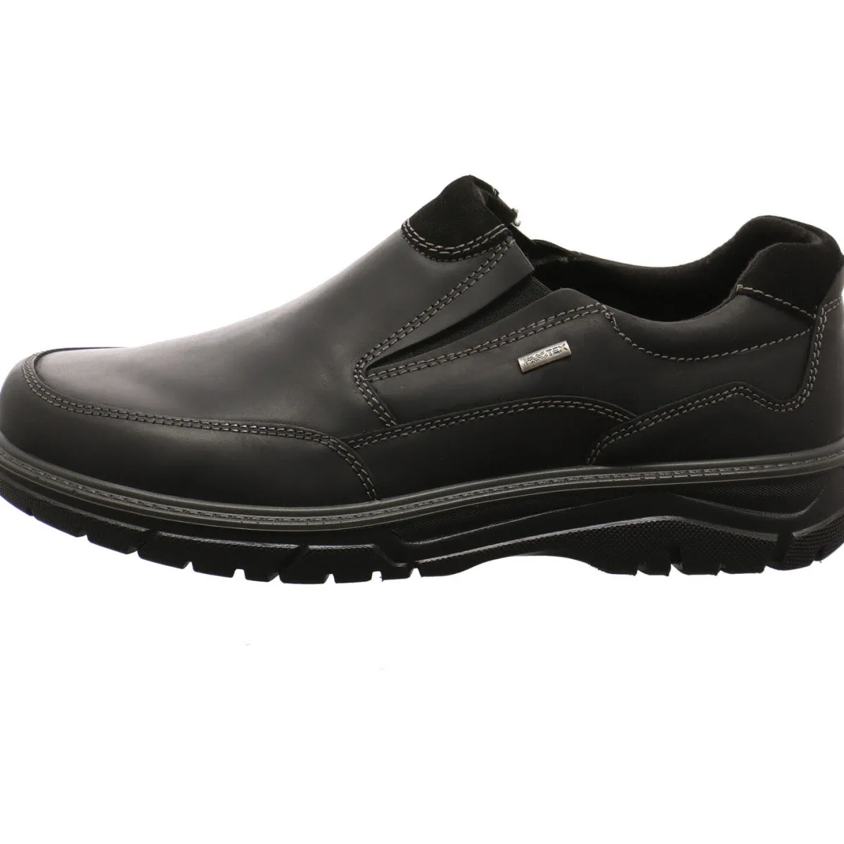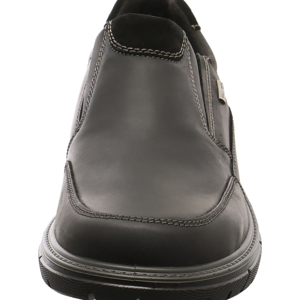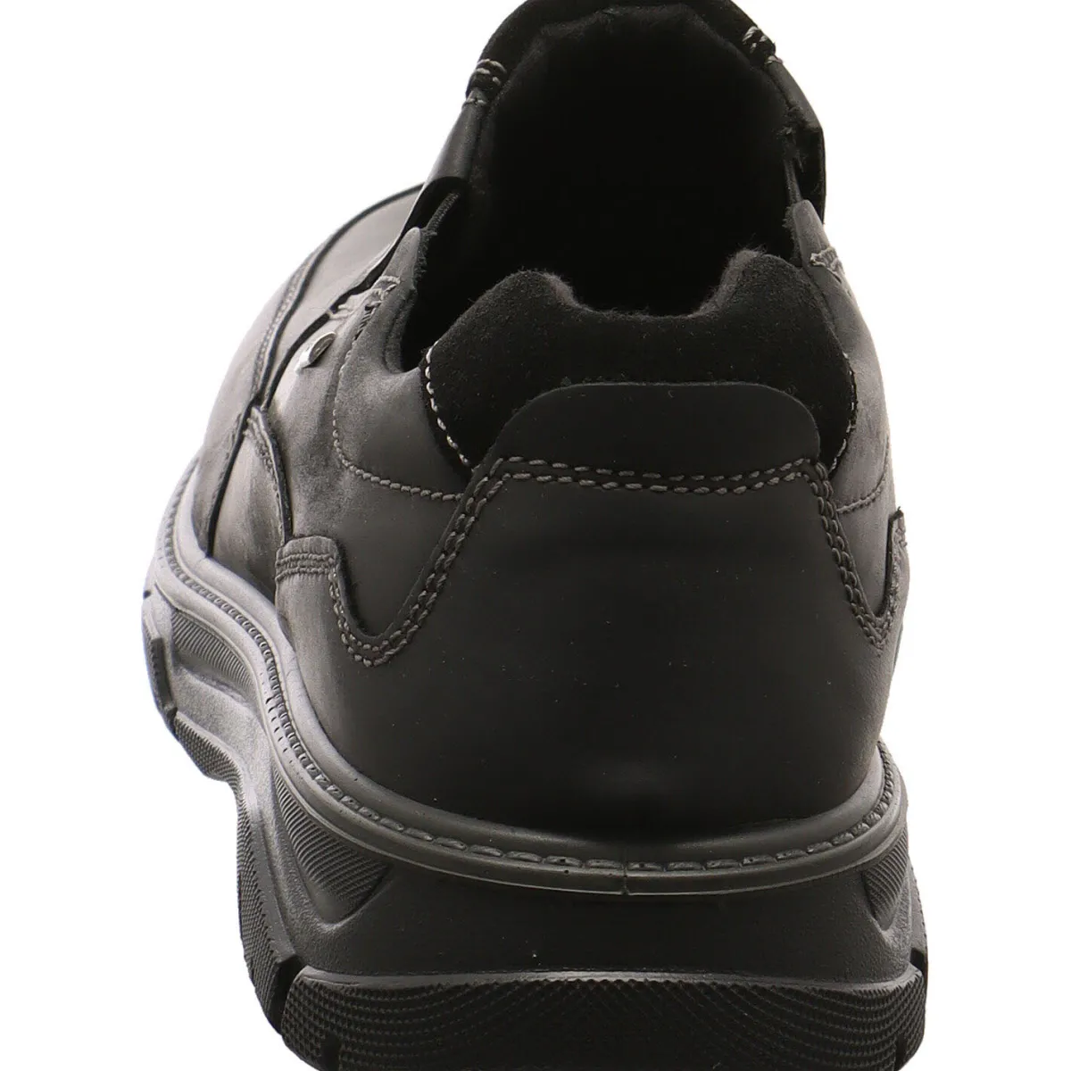 Das Obermaterial aus weichem Echtleder in Schwarz, ist mit hellen Steppnähten versehen. Der gepolsterte Schaft hat Einsätze aus Veloursleder, die das klassische Design ein wenig auflockern.