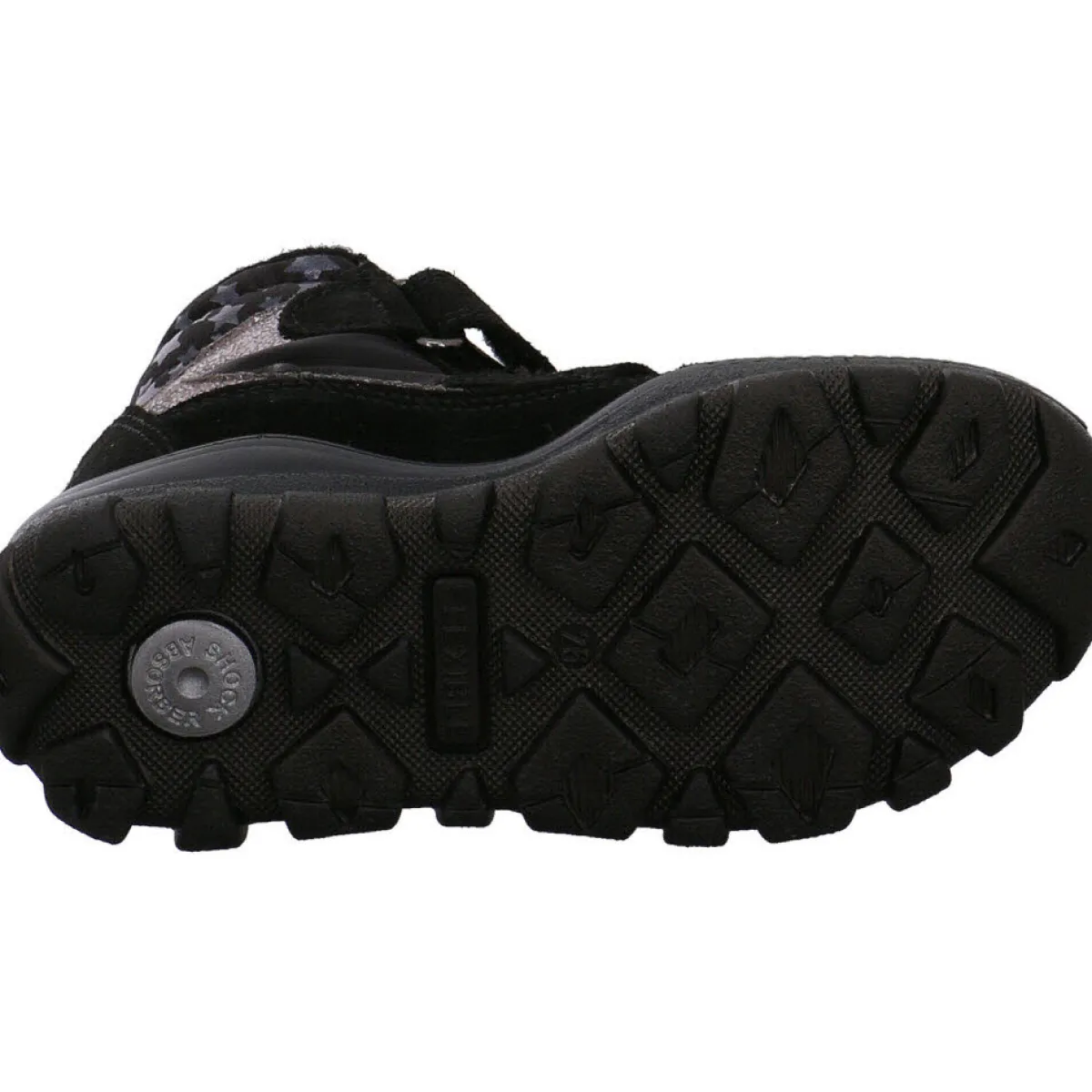 Das Highlight dieses Schuhs sind der Schaftabschluss mit den glänzenden Sternen und die Silberoptik an den Seiten.
