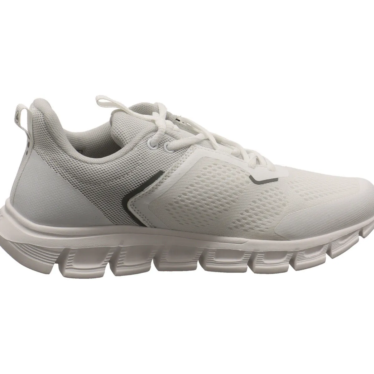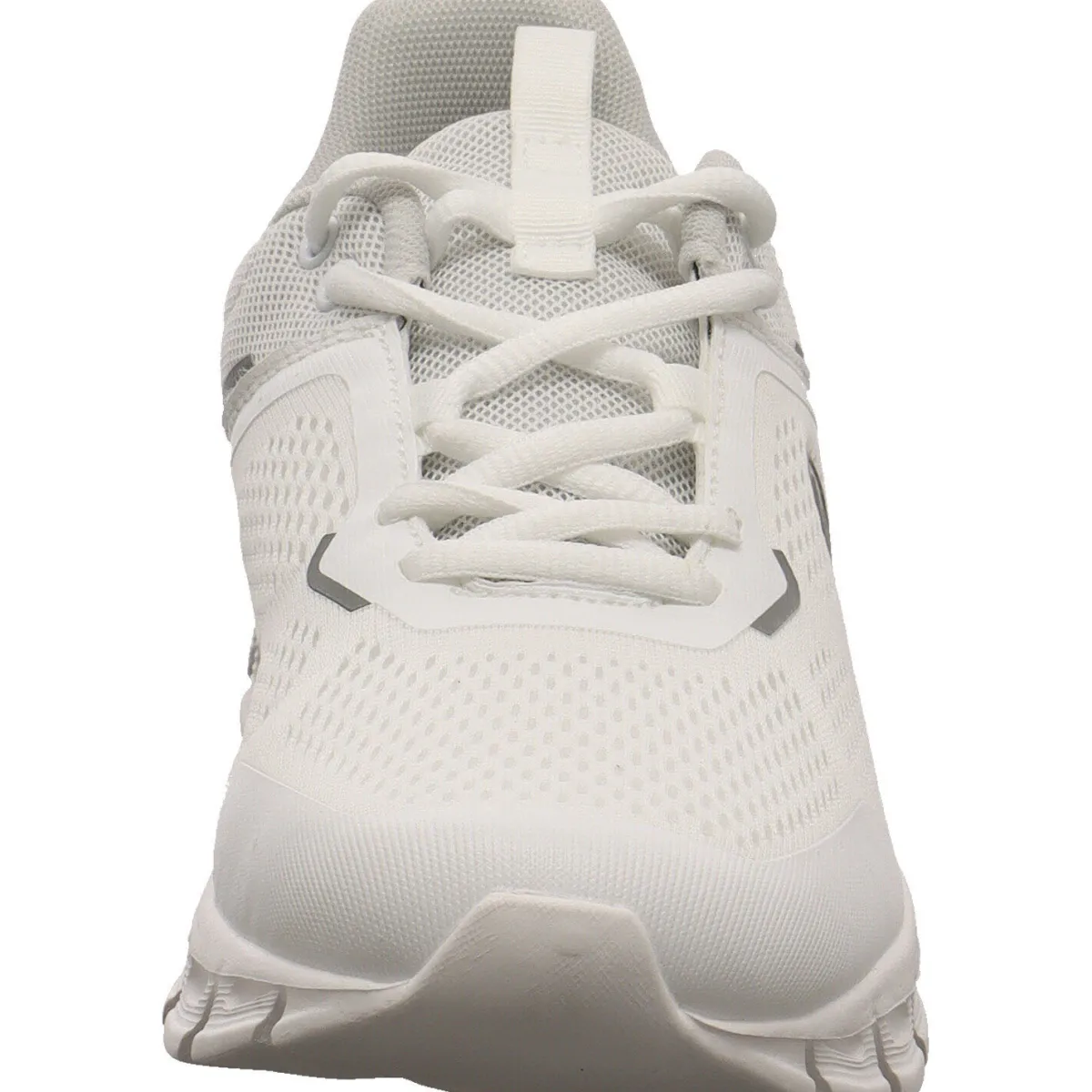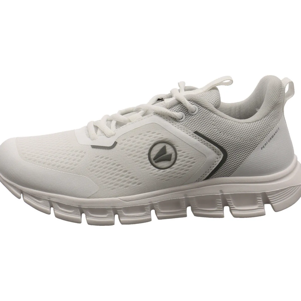 Das Obermaterial ist aus einem Mix aus Air Flow Mesh Textil in Weiß und stabilisierenden Synthetik Einsätzen. Air Flow Mesh ist ein offenporiges Meshmaterial, das für sehr gute Atmungsaktivität sorgt. Durch die Schnürung ist ein leichter Einstieg möglich und der Schuh lässt sich optimal an den Fuß anpassen. Die ShockAbsorb EVA-Zwischensohle sorgt für optimale Energierückgewinnung bei jedem Schritt. Zudem hält die Fast Dry Lining Technologie den Fuß bei jeder Anstrengung trocken. Das Material ist schnelltrocknend und nimmt Schweiß effektiv auf und transportiert diesen weg von der Haut.