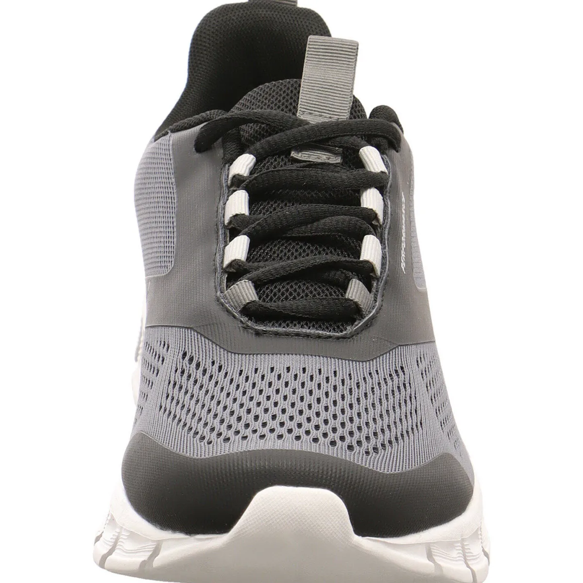 Das Obermaterial ist aus einem Mix aus Air Flow Mesh Textil in Schwarz, mit Grau und stabilisierenden Synthetik Einsätzen. Air Flow Mesh ist ein offenporiges Meshmaterial, das für sehr gute Atmungsaktivität sorgt. Durch die Schnürung ist ein leichter Einstieg möglich und der Schuh lässt sich optimal an den Fuß anpassen. Die ShockAbsorb EVA-Zwischensohle sorgt für optimale Energierückgewinnung bei jedem Schritt. Zudem hält die Fast Dry Lining Technologie den Fuß bei jeder Anstrengung trocken. Das Material ist schnelltrocknend und nimmt Schweiß effektiv auf und transportiert diesen weg von der Haut.