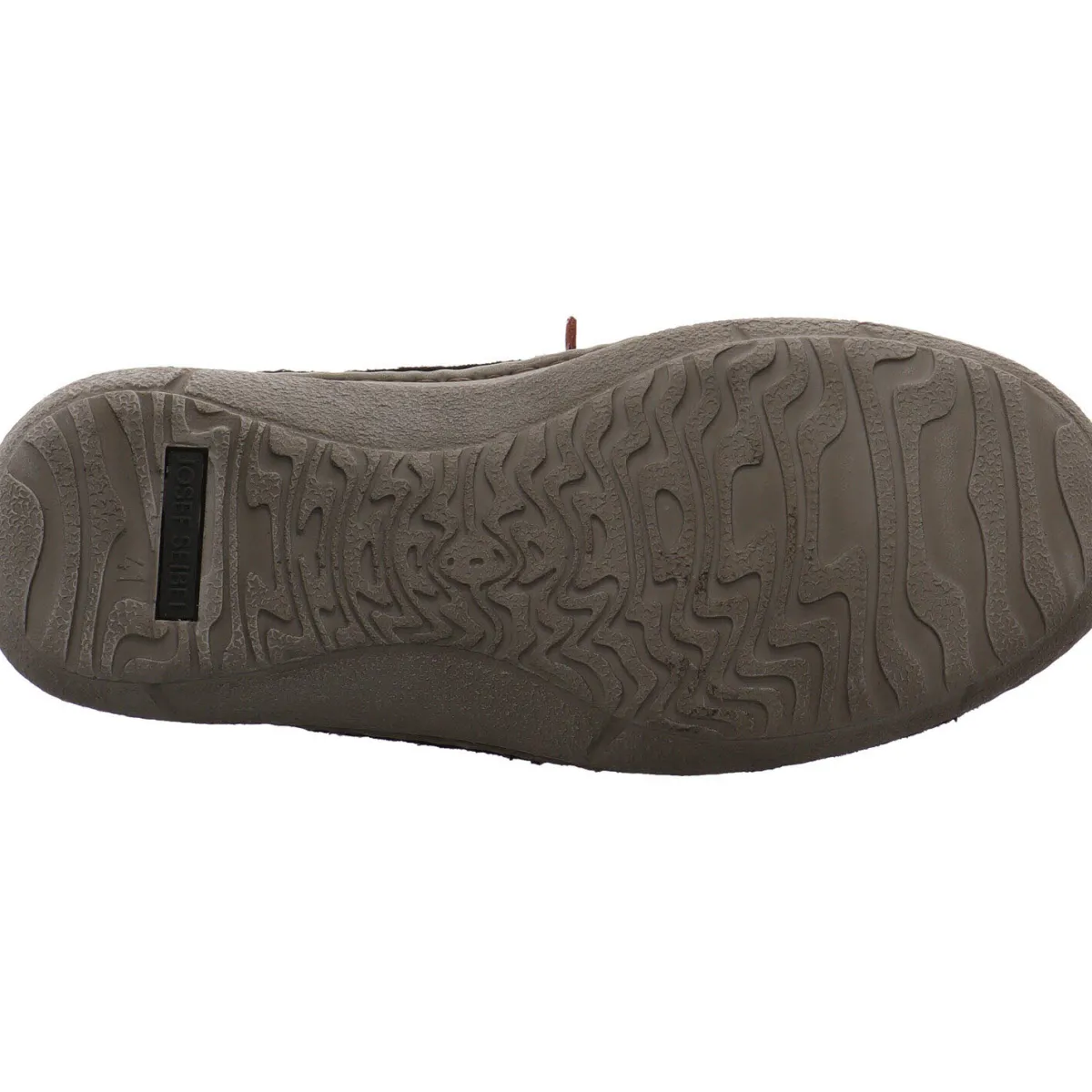 Das Obermaterial aus Echtleder in Blau begeistert durch seine unterschiedlichen Haptiken aus Glattleder und Veloursleder. Zusätzlich ist er mit einer Prägung versehen, die ihm das gewisse Etwas verleiht. Hingucker sind außerdem die Schnürung und das Innenfutter in Rot. Dank der Gummischnürung ist der Einstieg besonders leicht. Die Innensohle ist als Wechselfußbett gearbeitet, so können auch eigene Einlagen verwendet werden. Durch die extra Weite Schnittform bietet er den Füßen deutlich mehr Platz und komfort. Ein toller Schuh für den Alltag.