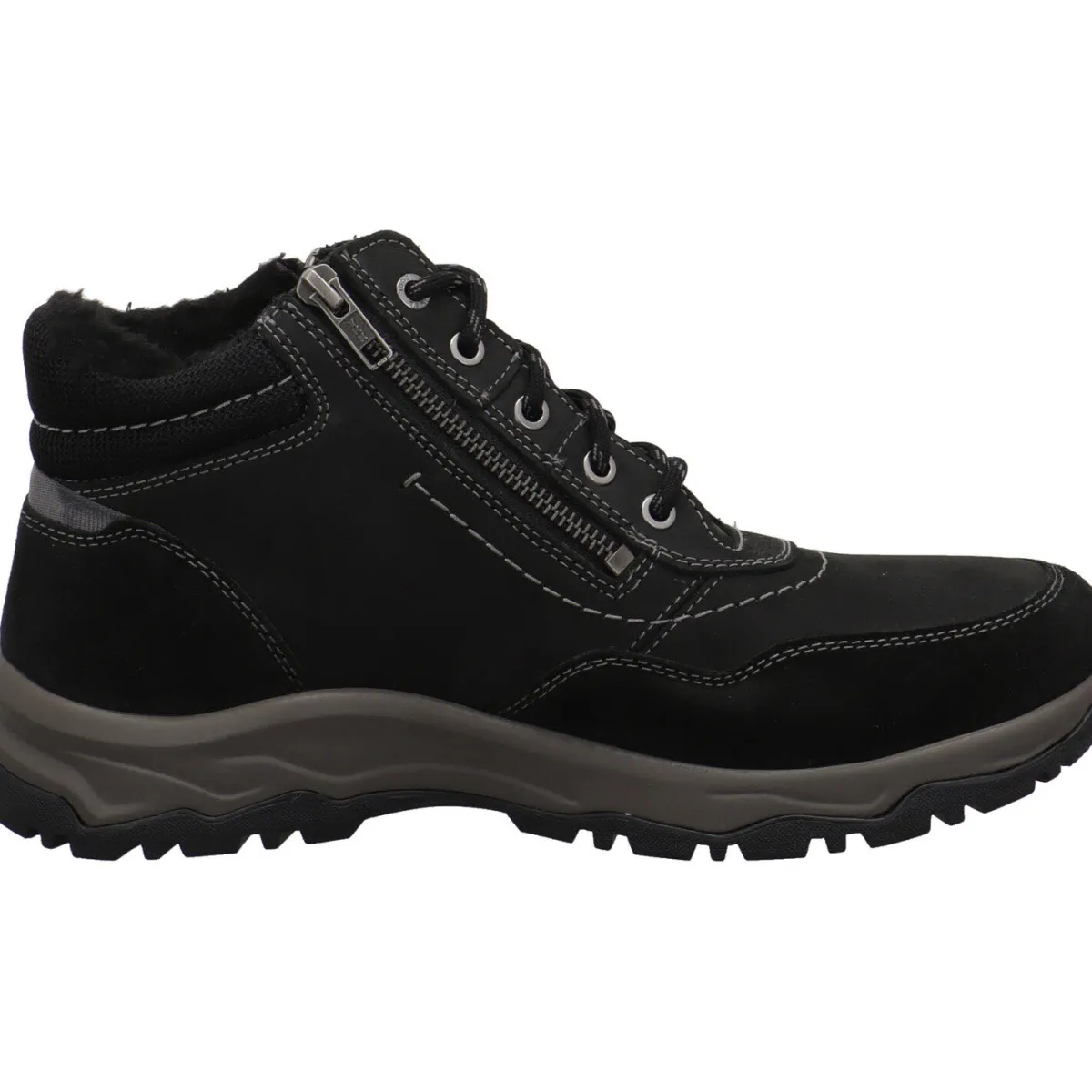 Sie wurde aus einem Mix aus hochwertigem Echtleder und Textil in Schwarz gefertigt. Helle Zierähte und unterschiedliche Haptiken, bringen das moderne Design toll zur Geltung. Der Schaft ist aus Textil und angenehm weich gepolstert. Durch den doppelten Reißverschluss ist der Einstieg ganz einfach und mit der Schnürung kannst du ihn genau auf deine Bedürfnisse anpassen. Das Innenfutter ist angenehm flauschig und dank der TopDry Tex Membran ist er dauerhaft wasserdicht, dennoch atumungsaktiv und absolut winddicht.
