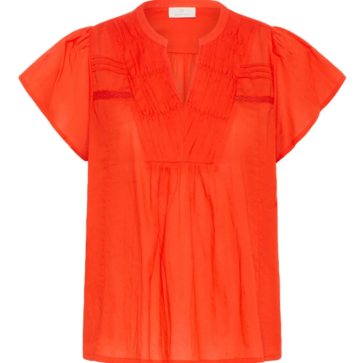 Die kurzen Ärmel und der Ausschnitt sind mit kleinen Plisseefalten versehen. Wodurch der romatische Look erzeugt wird und die Ärmel einen luftig fließenden Schnitt haben. Die Bluse hat einen normalen Schnitt und passt super zu deinem Sommer Look.