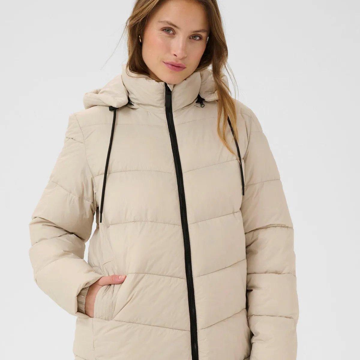 Die Jacke ist mit einer normalen Passform ausgestattet und kann so perfekt im Lagenlook getragen werden.