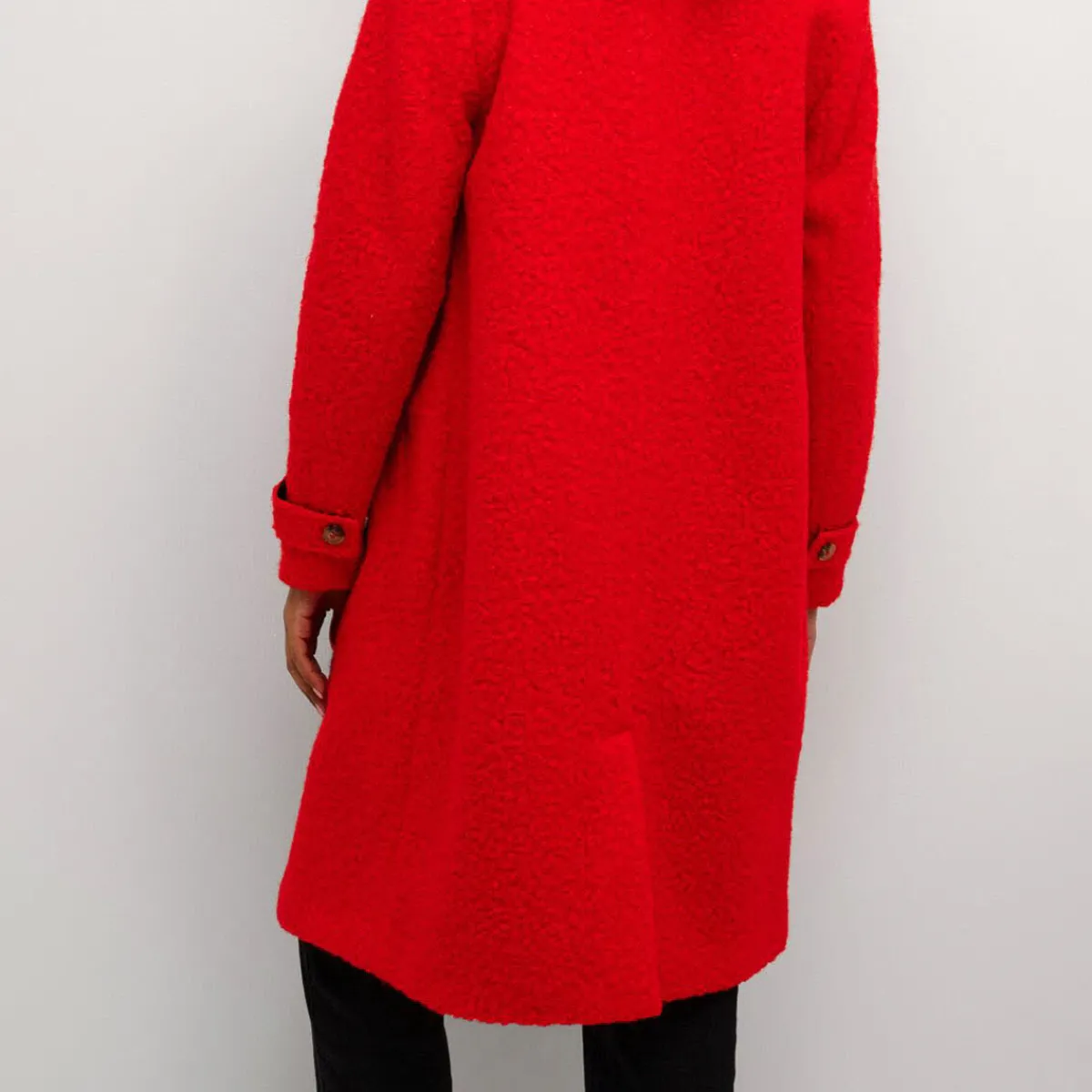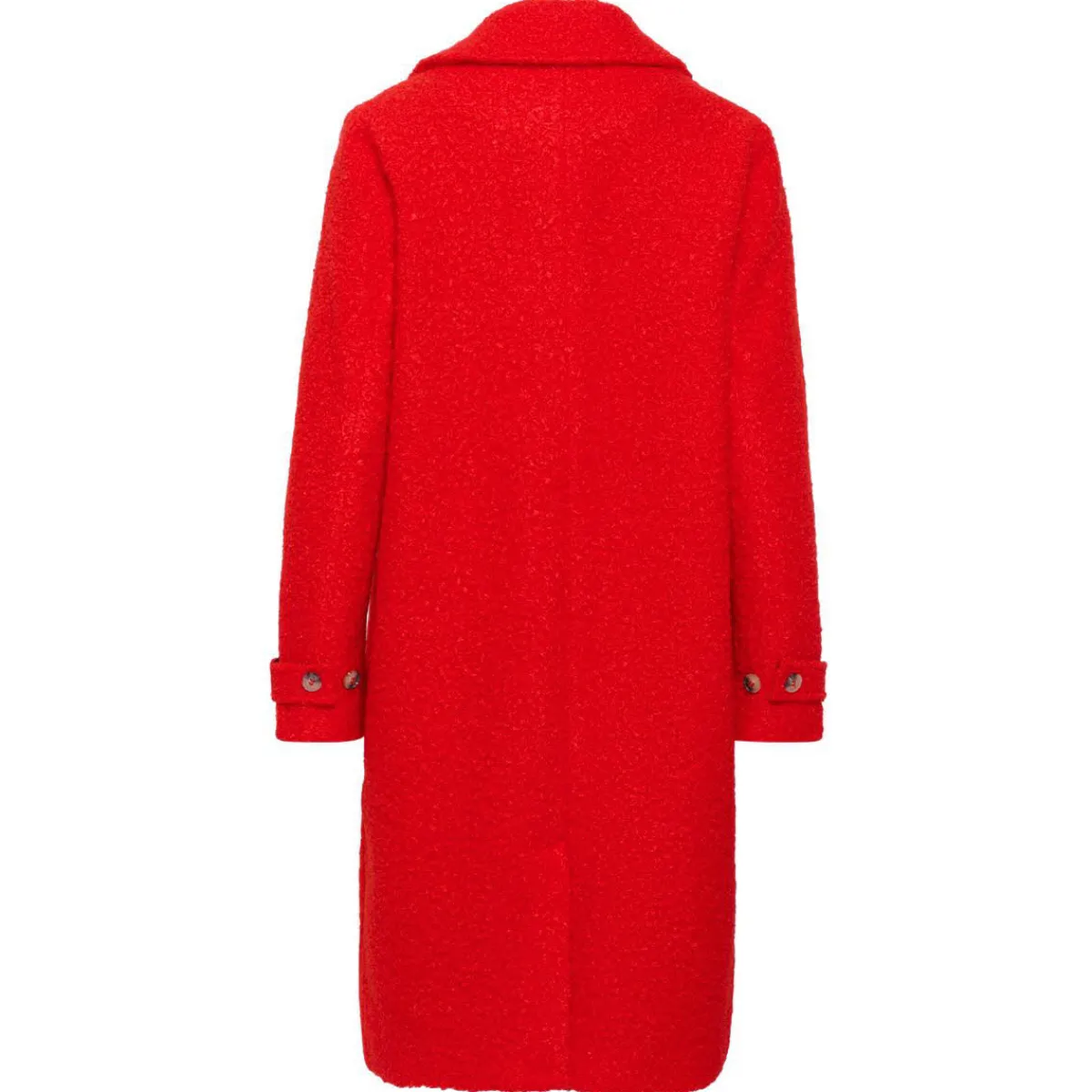 Er begeistert uns durch seine tolle Farbgebung in Rot und dem Lammfellimitat. Der Spitze Reverskragen verleiht ihm einen klassischen Look. Er ist mit Knöpfen zu schließen und in Regular Fit geschnitten. Der Mantel ist Knielang und an den Ärmeln mit Riemen versehen, welche ein Knopf schmückt.