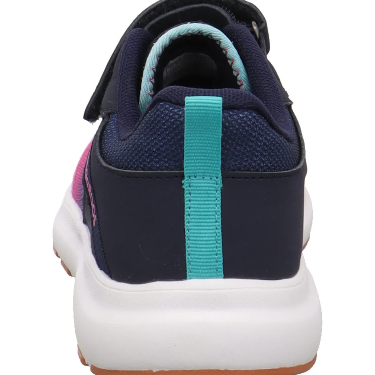 Er wurde aus flexiblen Textil in Blau mit Pink gefertigt und ist an der Schuhspitze und Ferse mit Einsätzen aus Synthetik versehen, diese machen ihn robust.