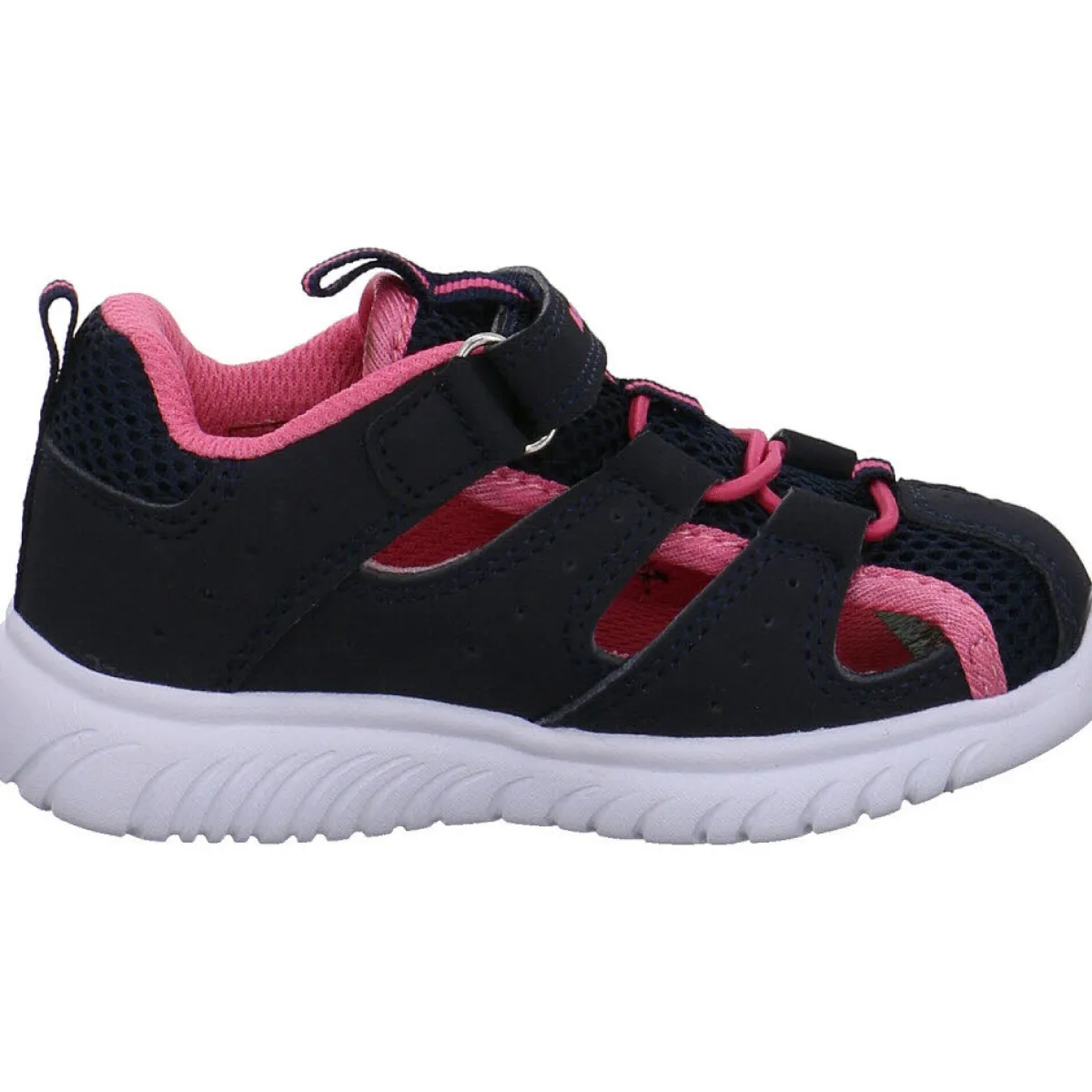 Die verstärkte Schuhspitze schützt die Zehen auch auf unwegsamem Gelände. Durch den Klettverschluss und die Gummischnürung lässt er sich perfekt den Kinderfüßen anpassen und ist leicht an- und auszuziehen.