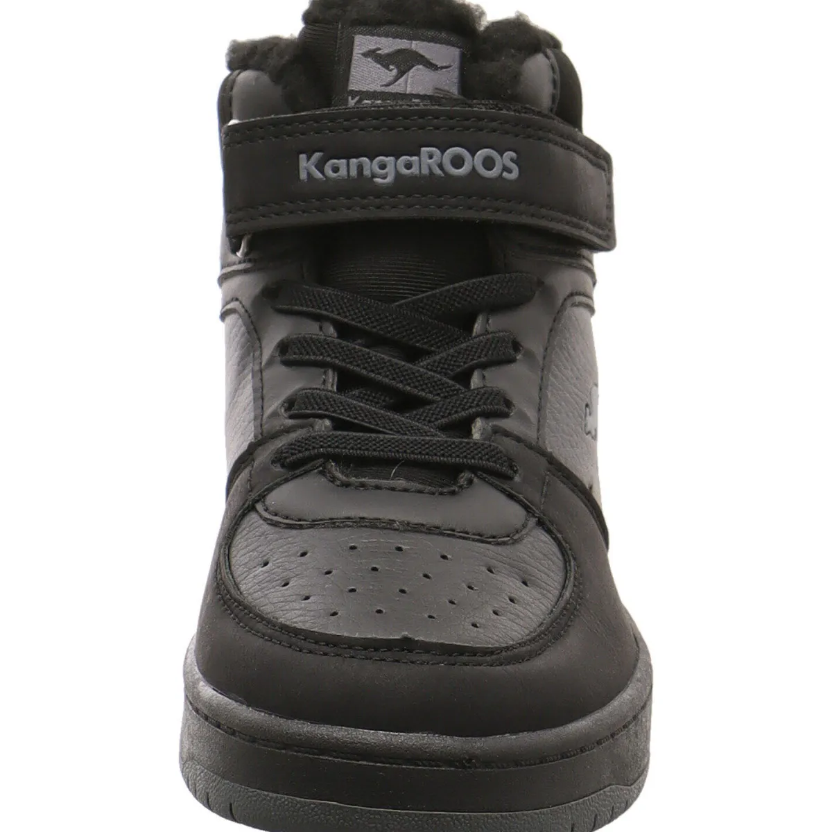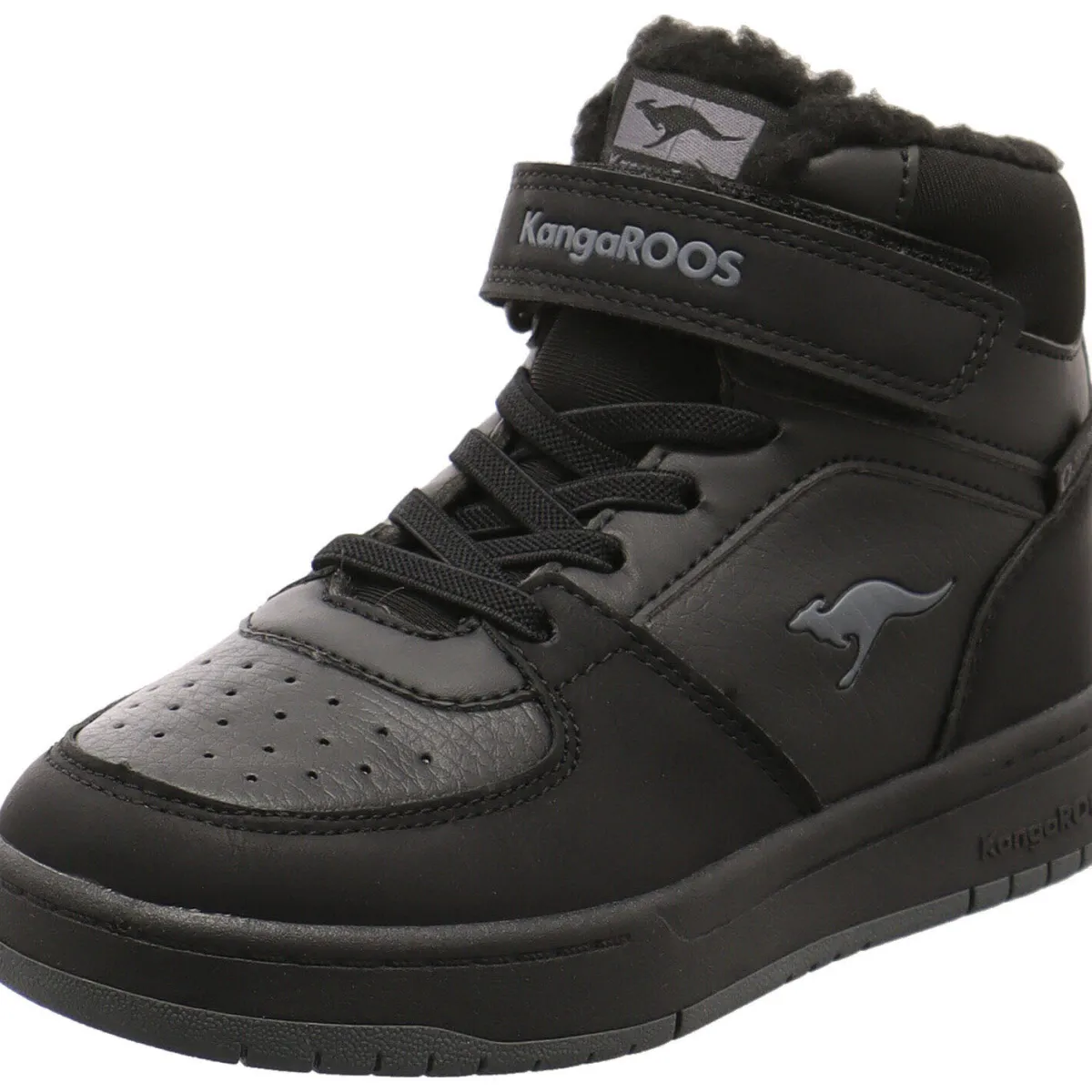 Das Obermaterial wurde aus einem Mix aus Kunstleder und Textil in Schwarz gefertigt. Die Overlay Optik und kleine Lasercuts auf dem Blatt, zusqammen mit dem Kanguru an der Seite und dem Markenlogo, geben dem Schuh sein modisches Aussehen.