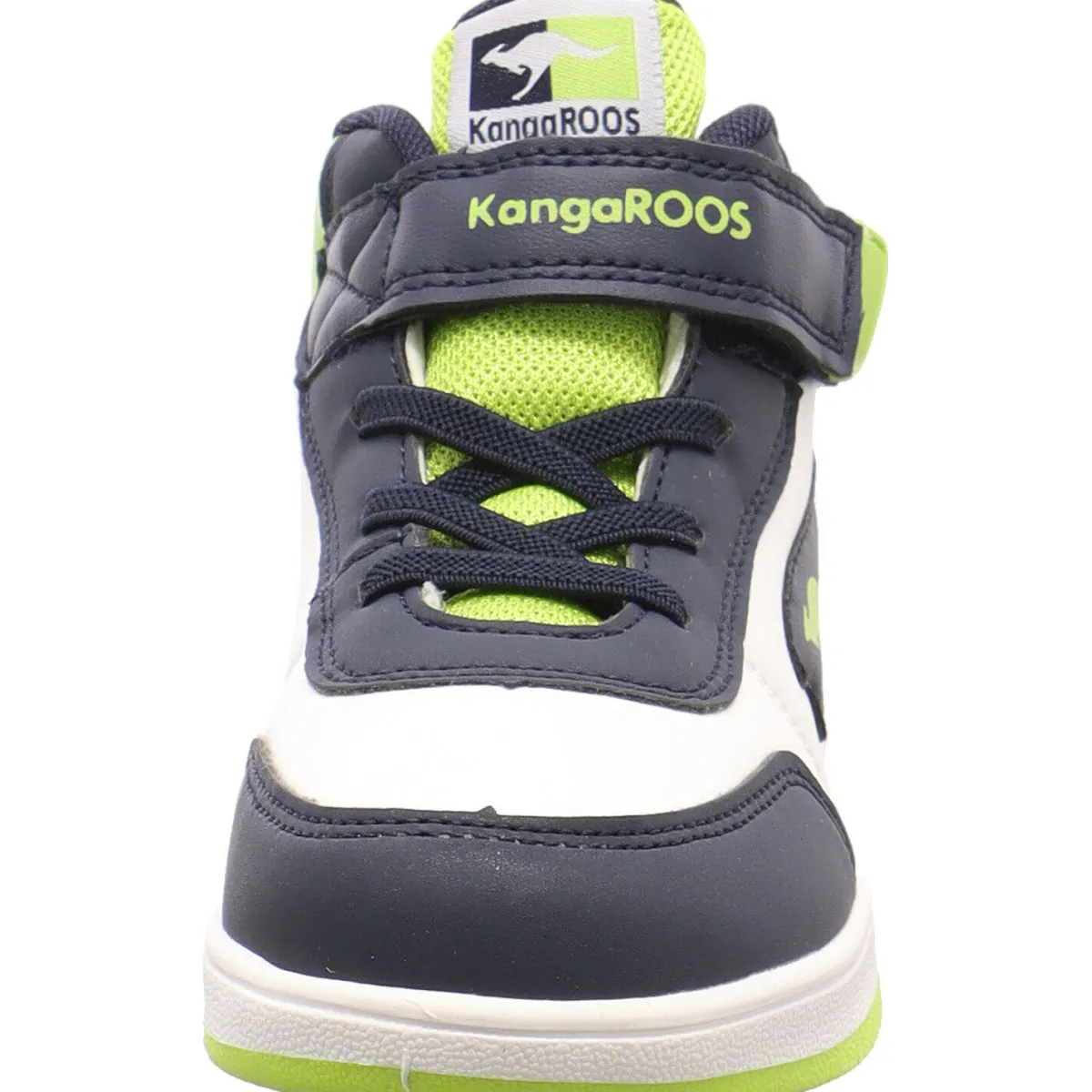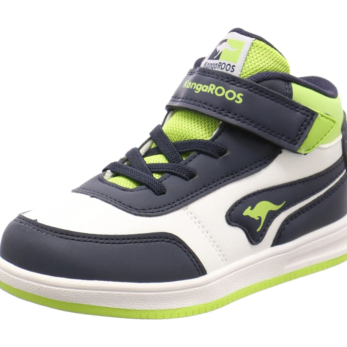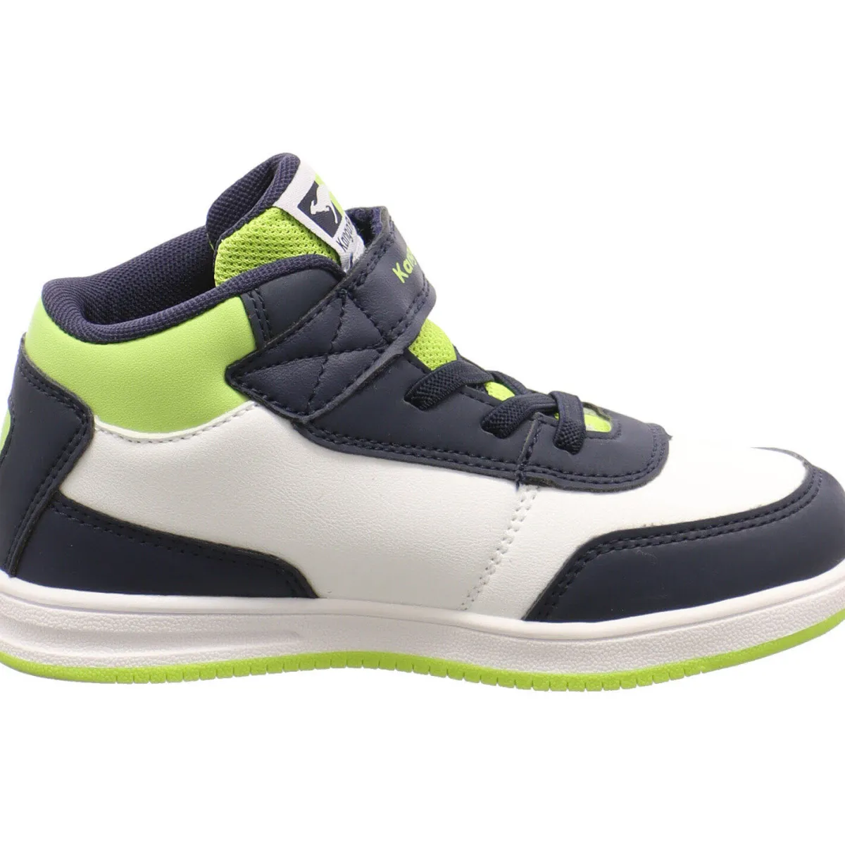 Das Obermaterial besteht aus einem Mix aus Kunstleder und Textil im Colour Blocking Look mit Blau, Weiß und Neon Grün.