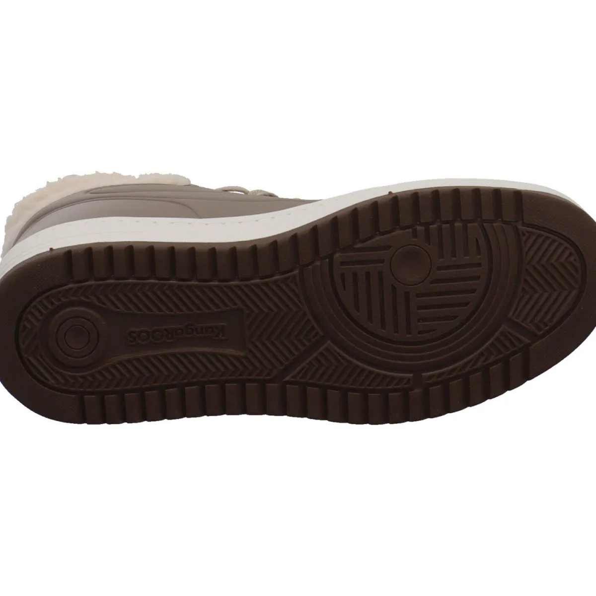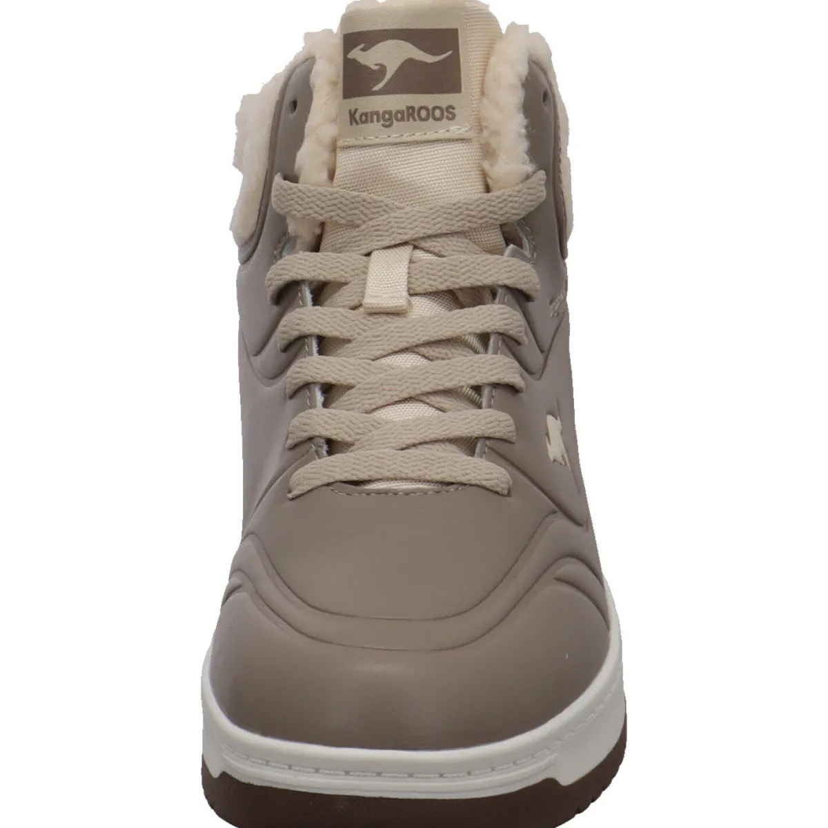 Der Schuh wurde aus pflegeleichtem Kunstleder in Beige gefertigt und besticht optisch durch die farblich abgesetzten Schnürsenkel und die typischen KangaRoos Details.