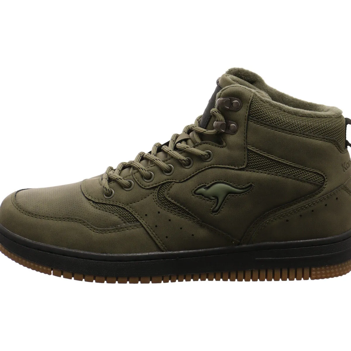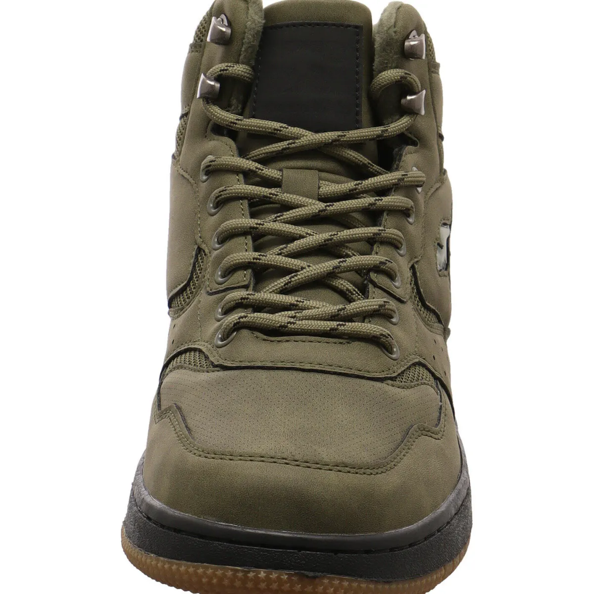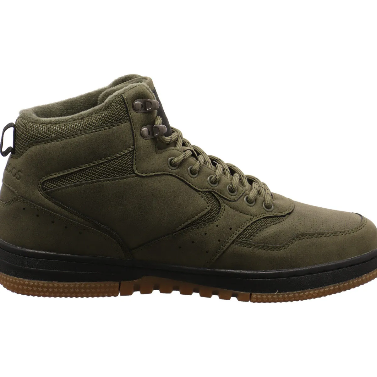 Das Obermaterial wurde in einem Mix aus Kunstleder und Textil Mesh in Olive Grün gefertigt.