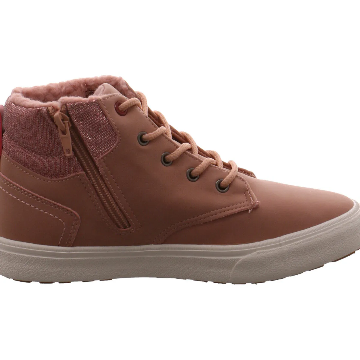 Das Obermaterial aus Kunstleder ist robust und langlebig und wird optisch durch Ziernähte und das seitlich aufgebrachte Känguru aufgewertet. Ein weiteres optisches Highlight ist der Glitzereffekt am Schaftabschluss.